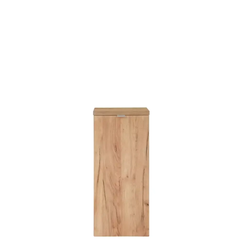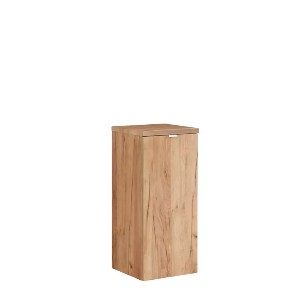Białe szafki łazienkowe na wysoki połysk wzbogacone wstawkami w kolorze dąb craft złoty, pomogą zaaranżować łazienkę w stylu nowoczesnym. Przytulne, rustykalne wnętrze w łazience uzyskasz z pomocą szafek łazienkowych w drewnopodobnym dekorze dąb craft złoty, a czarne, matowe fronty będą zwieńczeniem łazienki loftowej. Kolekcja Charm zawiera 9 szafek wiszących, które możesz zestawiać jedna z drugą, tak aby stworzyć zestaw mebli do łazienki. Dostępne są; słupki łazienkowe z pięcioma półkami zamykanymi oraz wysokie szafki z półkami zamykanymi, z dodatkowymi szklanymi półkami po bokach, wzbogacone lustrem na froncie; Szafki bez frontów, na których ułożysz dopasowane kolorystycznie do wnętrza ręczniki; szafki z koszem cargo, które będą idealnym miejscem na brudne ubrania oraz szafki pod umywalkę. Szafki wyposażone są w zawiasy z cichym domykiem i metalowe uchwyty krawędziowe.