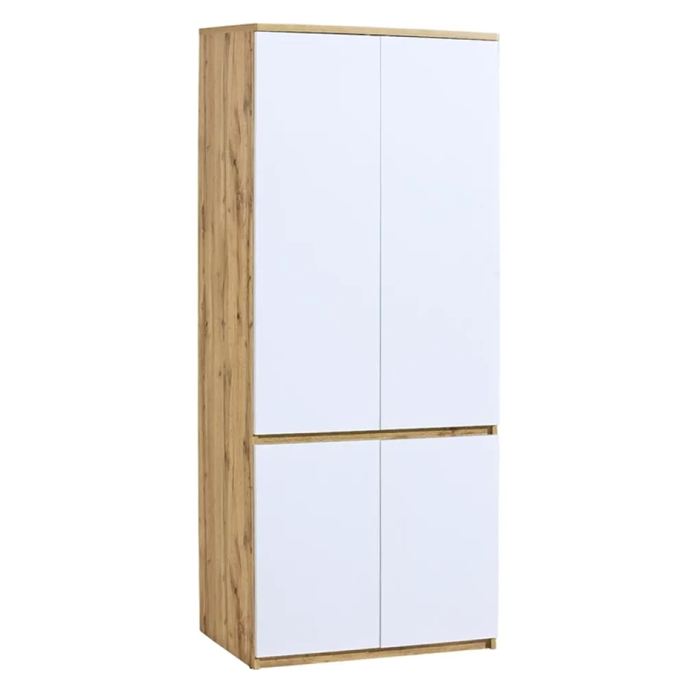 Zaprojektowana z myślą o dzisiejszej młodzieży, ta nowoczesna szafa z półkami łączy w sobie praktyczność i estetykę, tworząc idealne miejsce na ulubione ubrania, buty i akcesoria. Wyposażona w dwie praktyczne półki, oferuje mnóstwo miejsca na składanie swetrów, koszul i innych elementów garderoby. Ale to nie wszystko! Drążek na wieszaki umożliwia zawieszenie najbardziej delikatnych elementów ubioru, zapobiegając tym samym ich gnieceniu.