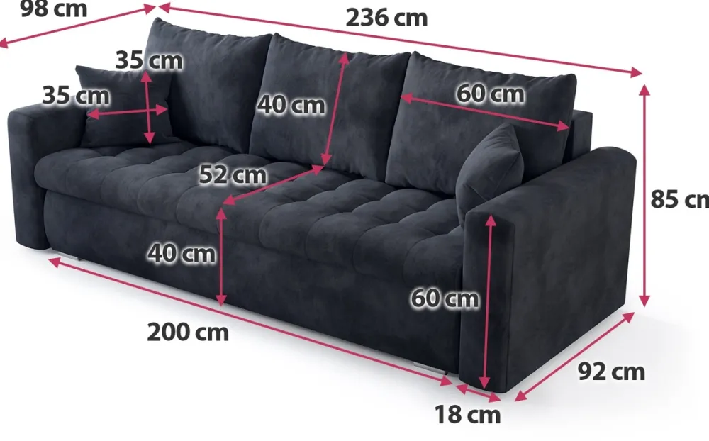 Meble Młodzieżowe|Kanapy I Sofy>BROMARKT Grafitowa kanapa rozkładana z funkcją spania do salonu LUIS