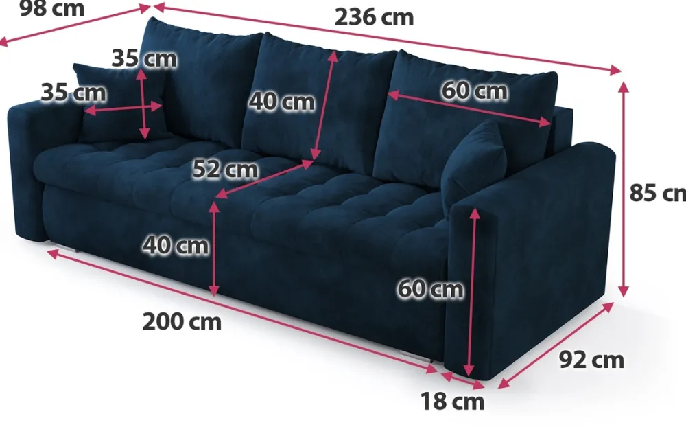 Meble Młodzieżowe|Kanapy I Sofy>BROMARKT Granatowa kanapa rozkładana z funkcją spania do salonu LUIS