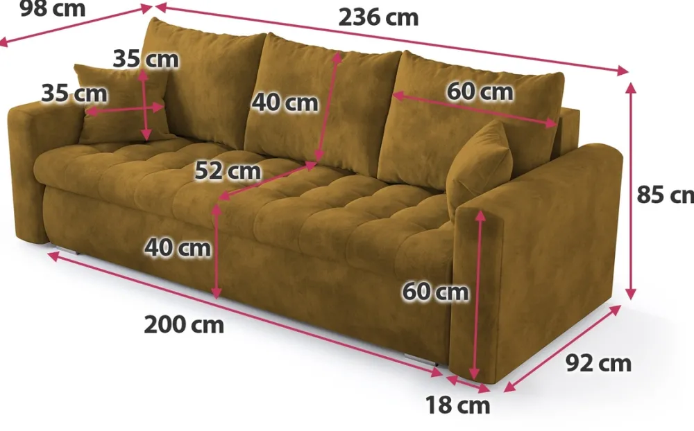 Meble Młodzieżowe|Kanapy I Sofy>BROMARKT Nowoczesna kanapa z funkcją spania do salonu LUIS musztardowa