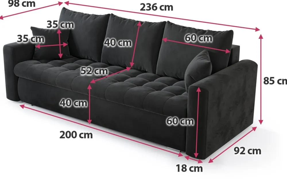 Meble Młodzieżowe|Kanapy I Sofy>BROMARKT Szara kanapa do salonu z funkcją spania LUIS pojemnik na pościel