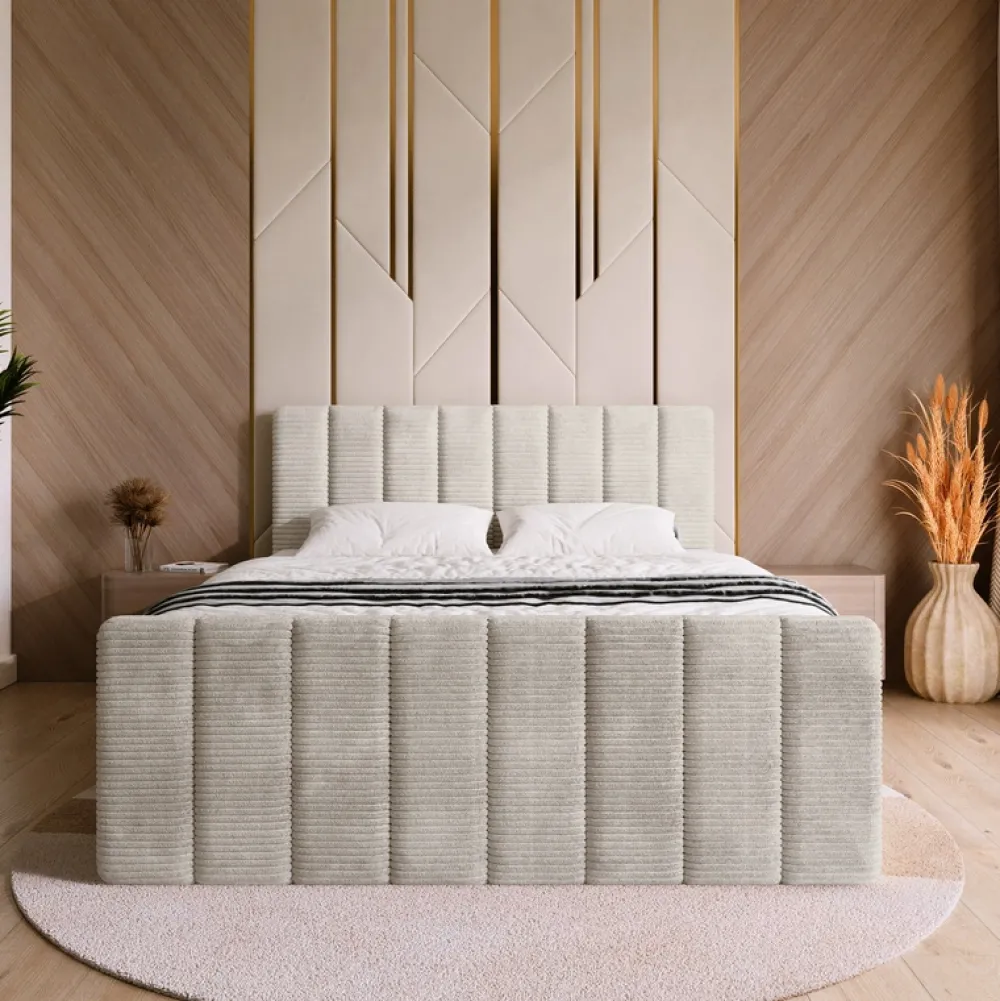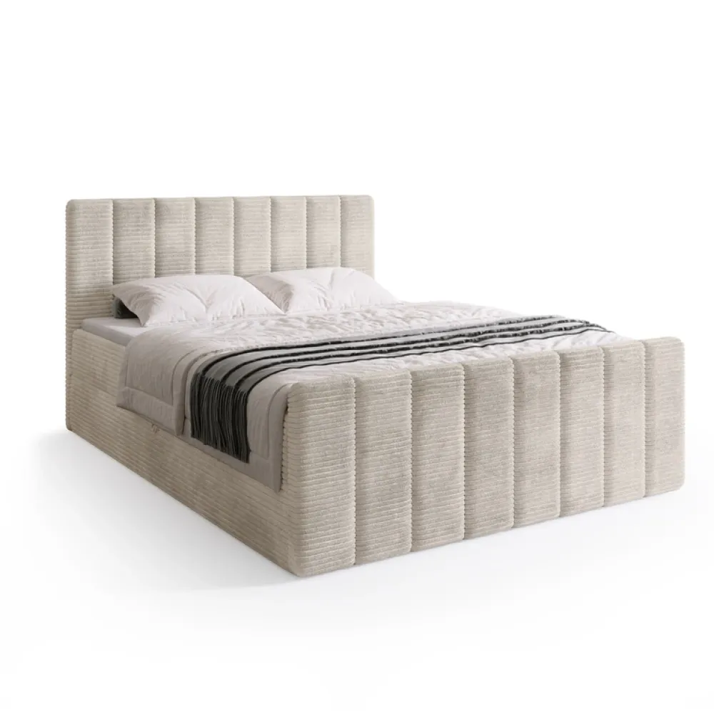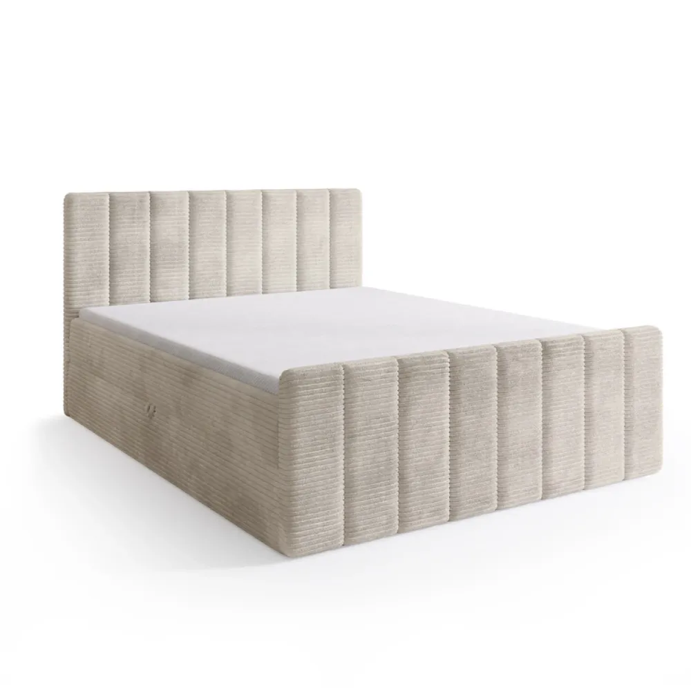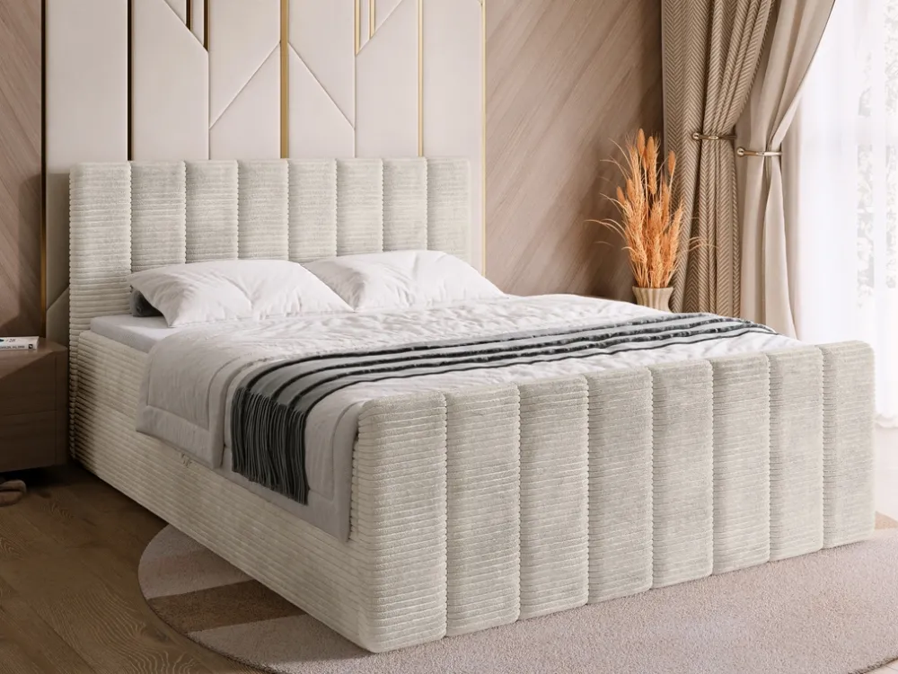 Meble Młodzieżowe|Łóżka Młodzieżowe>BROMARKT Beżowe łóżko kontynentalne 140×200 cm z pojemnikiem DENVER DUO sztruks