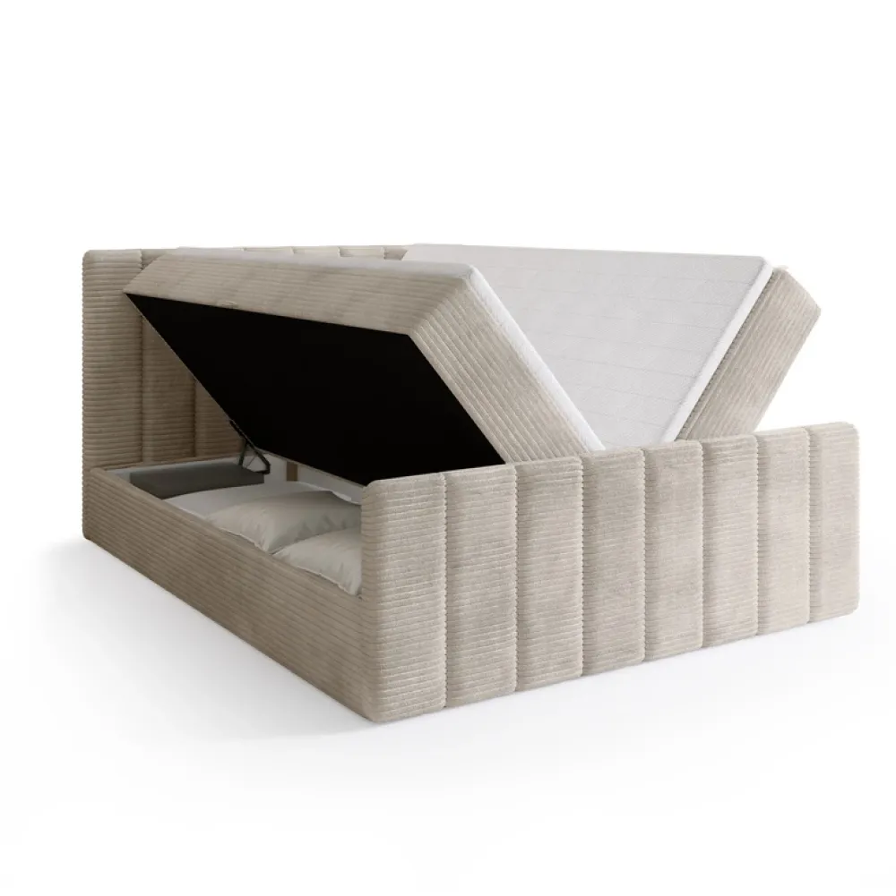 Meble Młodzieżowe|Łóżka Młodzieżowe>BROMARKT Beżowe łóżko kontynentalne 140x200 cm z pojemnikiem DENVER DUO sztruks