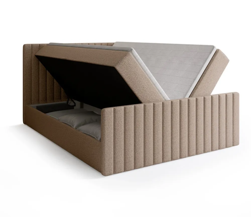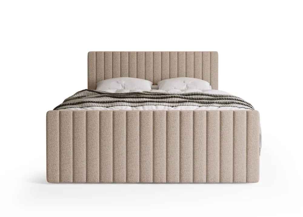 - Beżowe łóżko kontynentalne DREAM DUO 140×200 cm z zagłówkiem, dwoma pojemnikami i materacem ze sprężynami bonell oraz pianką T30. Tapicerowane wytrzymałą tkaniną Inari 22 o lnianej strukturze. Komfort, styl i porządek w nowoczesnej sypialni.