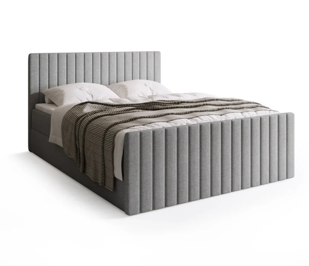 - Szare łóżko kontynentalne DREAM DUO 140×200 cm obite tkaniną Malmo 90. Wyposażone w materac ze sprężynami bonell, dwoma pojemnikami i tapicerowanym zagłówkiem. Komfortowy sen i elegancja w Twojej sypialni – idealne do nowoczesnych wnętrz.