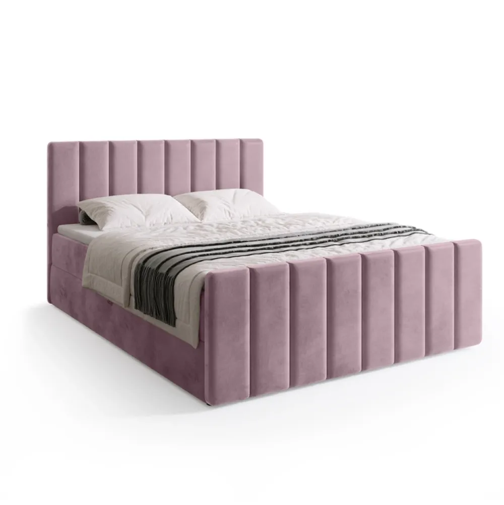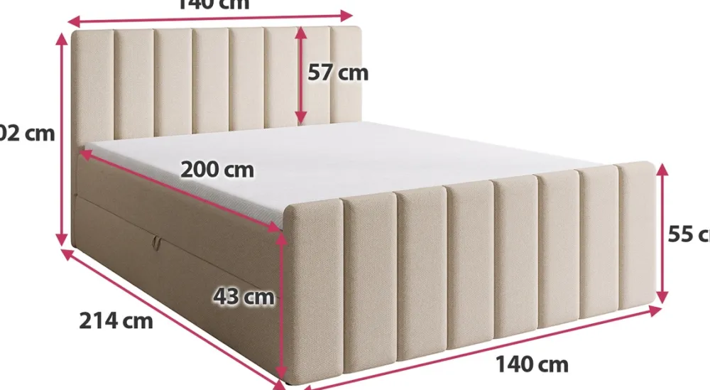 - Łóżko kontynentalne 140×200 cm DENVER posiada praktyczny pojemnik na pościel, do którego dostęp ułatwia mechanizm sprężynowy. W zestawie znajduje się materac o średniej twardości, zbudowany ze sprężyn bonell oraz pianki T-30, co zapewnia komfortowy sen.