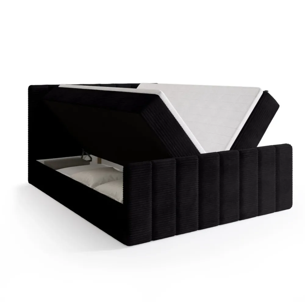 Funkcjonalność łóżka podkreślają dwa obszerne pojemniki na pościel, które otwierają się z pomocą sprężynowego automatu – dzięki temu dostęp do przechowywanych rzeczy jest szybki i bezproblemowy.