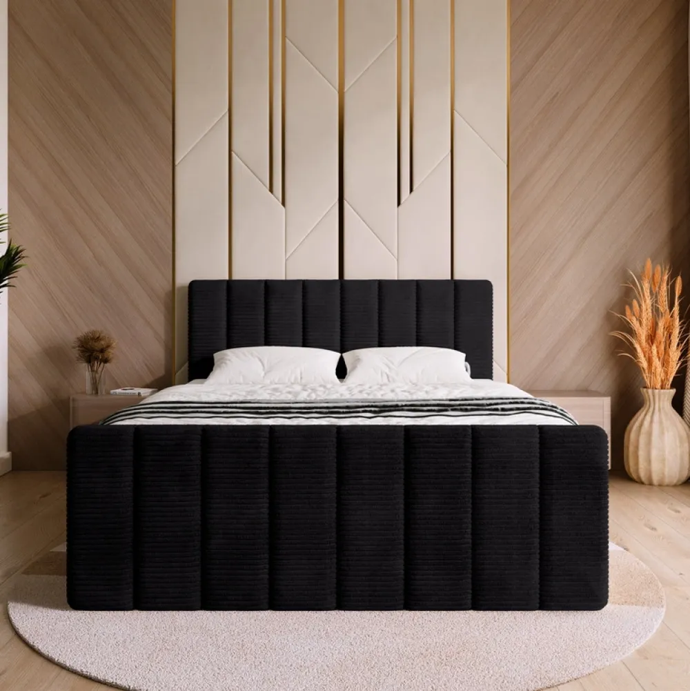 Łóżko wykonane jest w tkaninie POSO – szerokim, miękkim sztruksie o wyrazistej, prążkowanej strukturze. Materiał ten wyróżnia się wyjątkową przytulnością i aksamitnym wykończeniem, które zapewnia przyjemne doznania podczas codziennego użytkowania. Delikatne, grube prążki nie tylko dodają meblowi charakteru, ale również subtelnie zmieniają wygląd w zależności od kąta padania światła. Tkanina POSO łączy estetykę z trwałością – jest odporna na ścieranie i blaknięcie kolorów, dzięki czemu łóżko zachowuje swój elegancki wygląd na długi czas.