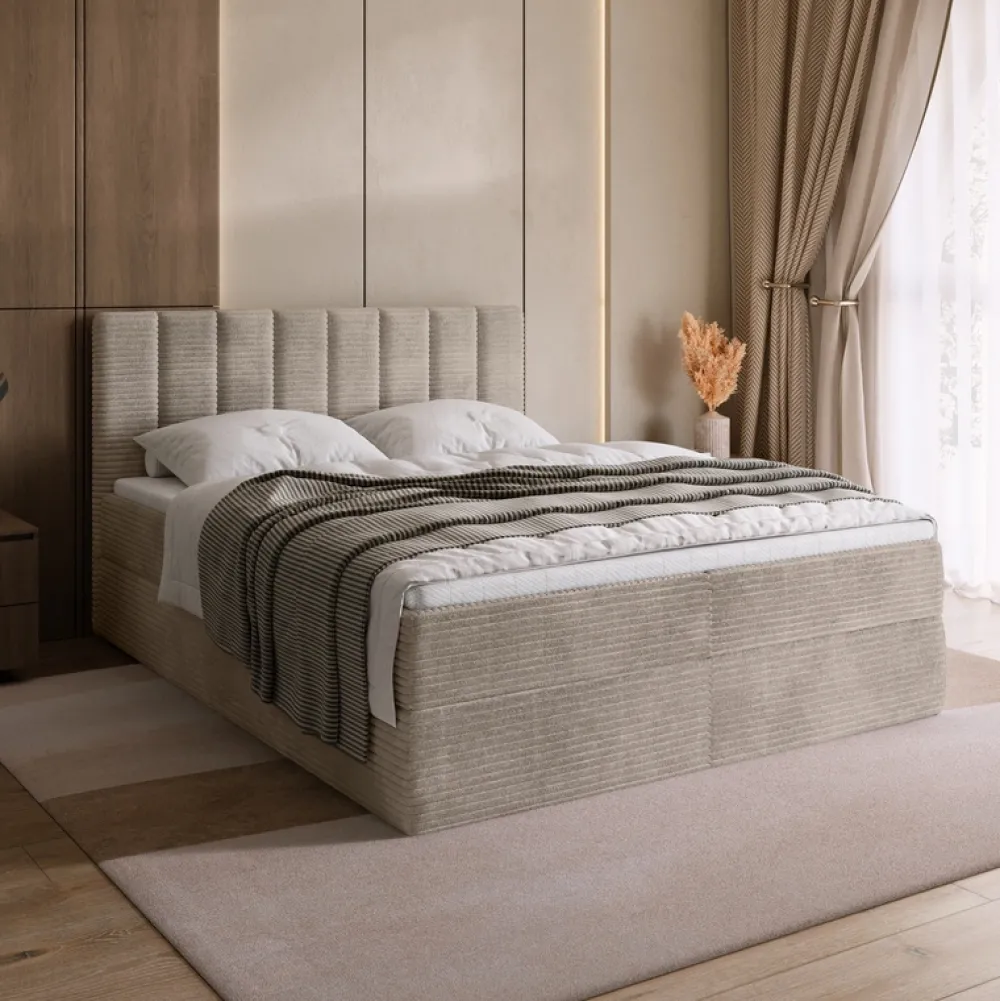 Meble Młodzieżowe|Łóżka Młodzieżowe>BROMARKT Sztruksowe łóżko kontynentalne 140x200 cm z pojemnikiem DENVER