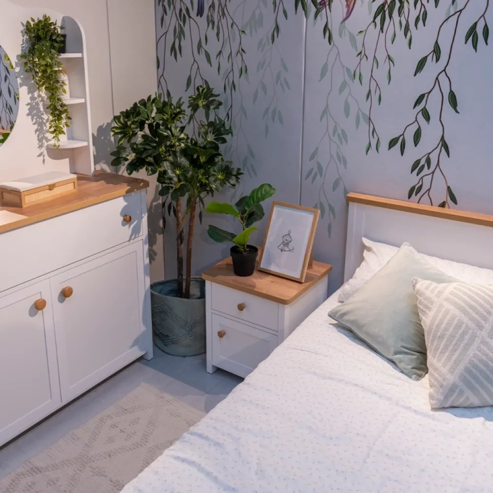 - Nogi oraz ramy nośne łóżka zostały wykonane z bardzo solidnej płyty laminowanej o grubości 25 mm.