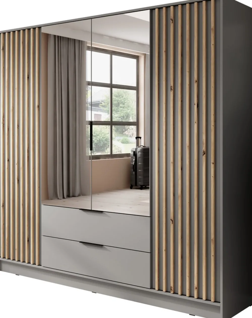 Meble Młodzieżowe>PIASKI Szara szafa z lustrami KELLY