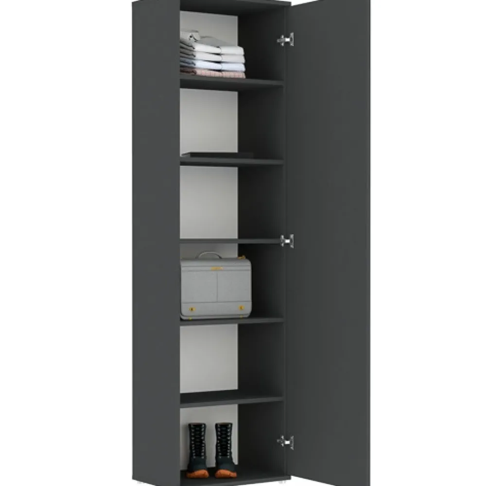 Zastanawiasz się, czy szafa z jednymi drzwiami pomieści wszystkie niezbędne rzeczy? KONTI zaskakuje pojemnością i praktycznym układem półek, które pomogą Ci utrzymać porządek w każdym pomieszczeniu.