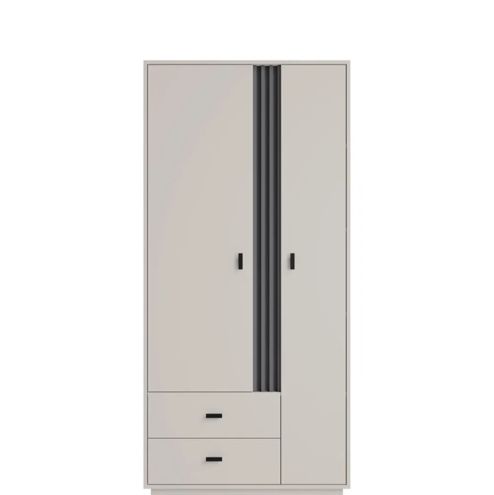 - Szafa dwudrzwiowa AGRA w kolorze kaszmiru z antracytowymi lamelami to połączenie elegancji i funkcjonalności. Dwie pojemne szuflady, drążek i półki zapewniają wygodne przechowywanie, a nowoczesny design doskonale dopełni sypialnię lub pokój młodzieżowy.