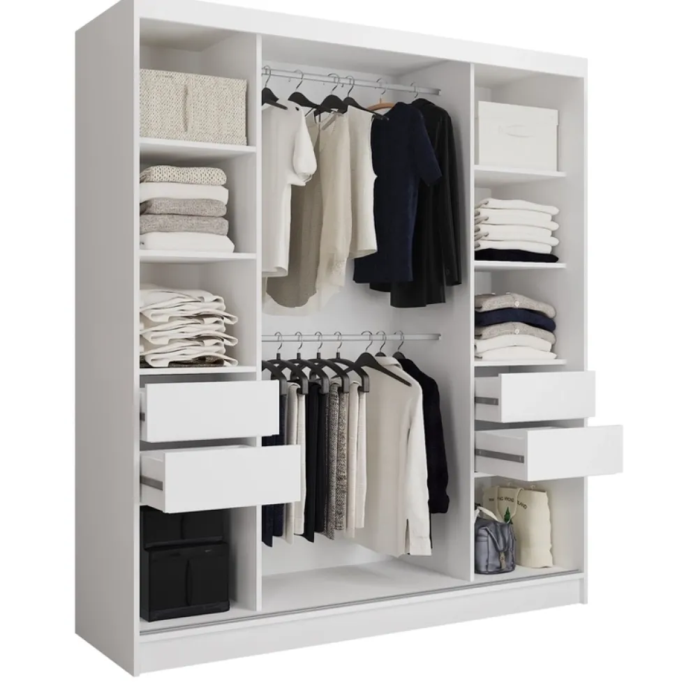- Szafa z przesuwnymi drzwiami – oszczędność przestrzeni i łatwy dostęp do zawartości