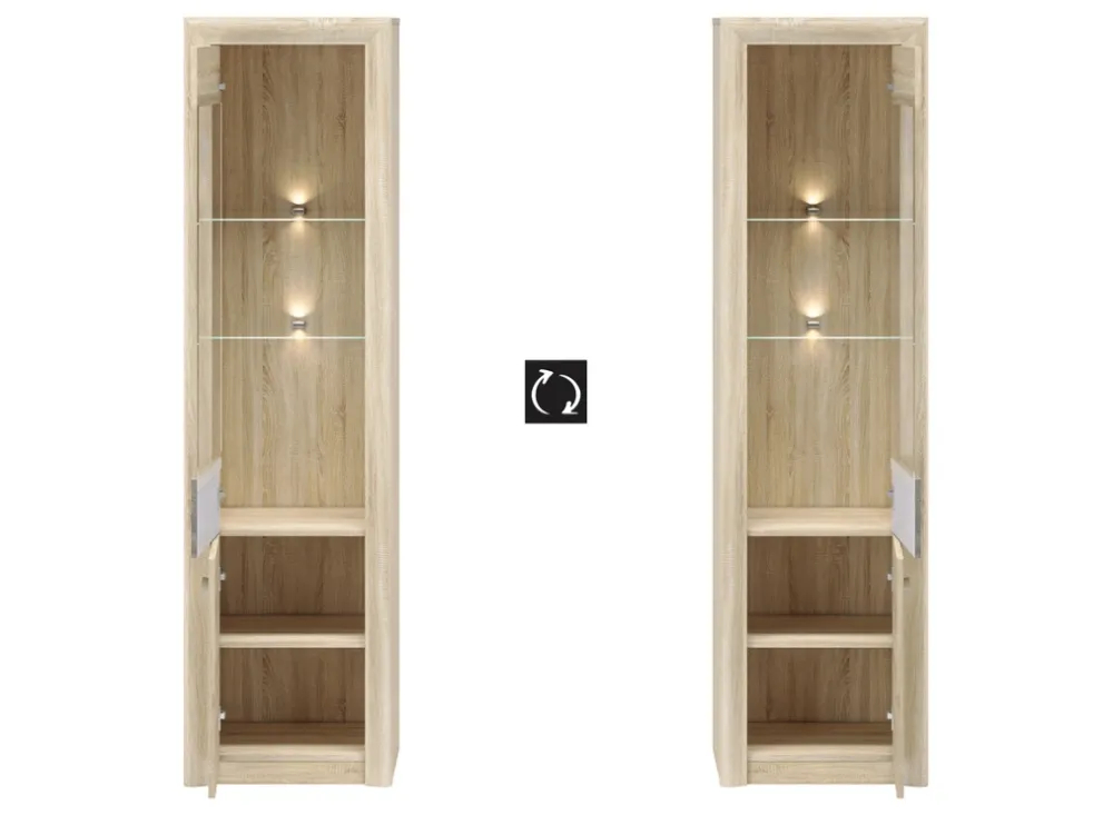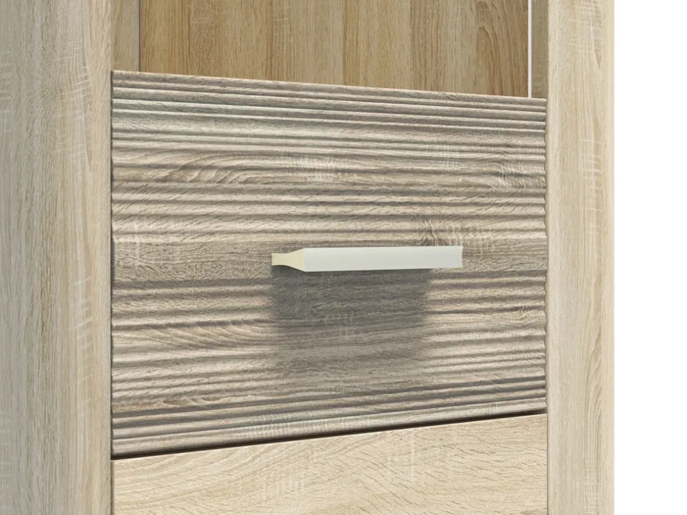 Kolor dąb sonoma to wybór, który nigdy nie wychodzi z mody. Jego naturalny, ciepły odcień doskonale komponuje się zarówno z klasycznym, jak i nowoczesnym wystrojem wnętrz. Witryna wykonana z dbałością o każdy detal stanie się ozdobą Twojego domu, dodając mu przytulności i elegancji.