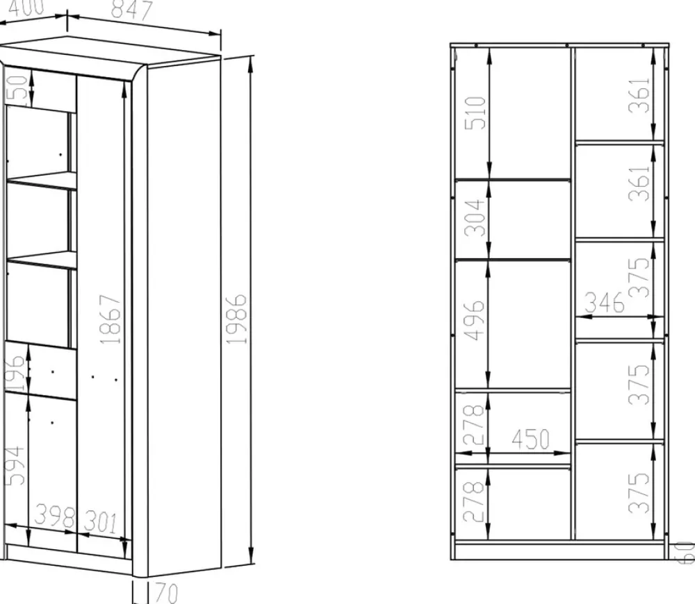 Dzięki szerokości 55 cm witryna świetnie sprawdzi się w niewielkich pomieszczeniach, gdzie liczy się każdy centymetr. Jej kompaktowy rozmiar pozwala na umieszczenie jej nawet w wąskich wnękach, a jednocześnie oferuje wystarczająco dużo miejsca na przechowywanie i ekspozycję Twoich rzeczy.