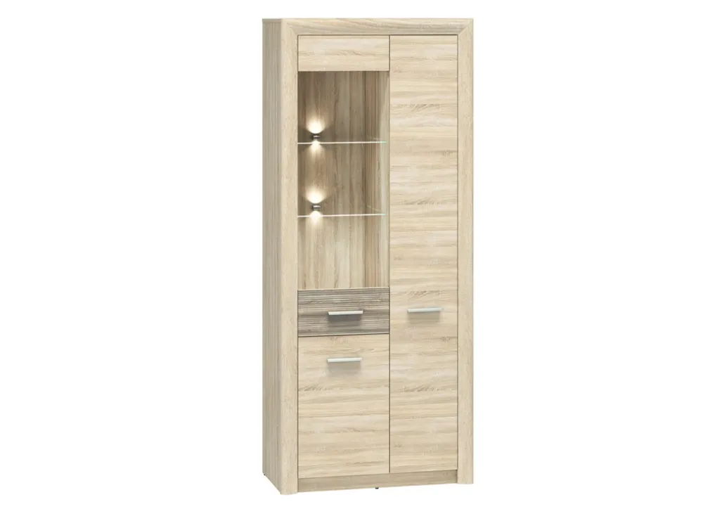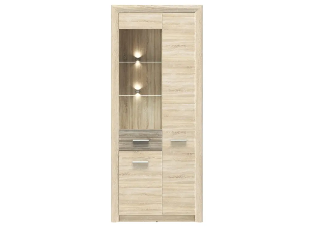 Szukasz mebla, który łączy w sobie funkcjonalność i elegancję? Nasza witryna o szerokości 85 cm CASTEL, w ponadczasowym kolorze dąb sonoma, spełni Twoje oczekiwania. To idealne rozwiązanie do salonu, jadalni czy gabinetu, które pozwoli Ci wyeksponować to, co najcenniejsze, i jednocześnie przechować wszystko w idealnym porządku.