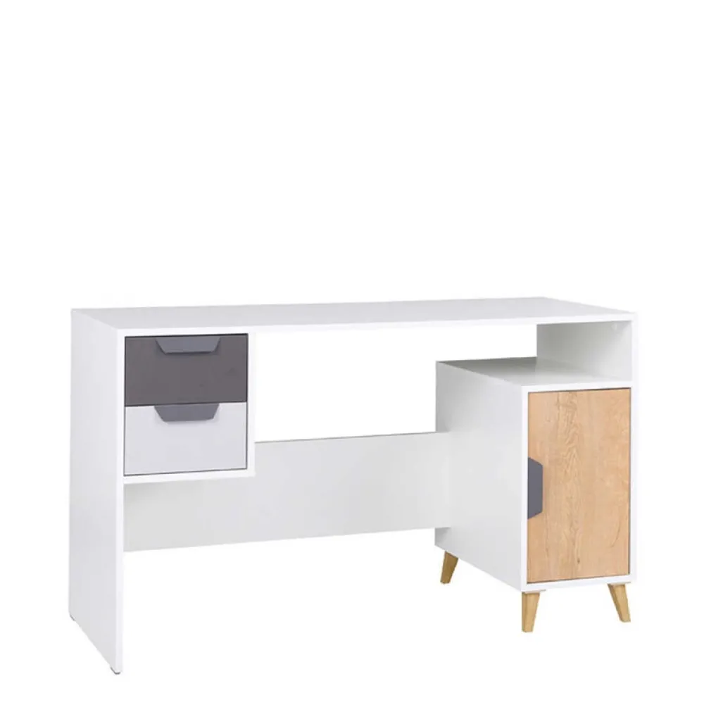 szer. 80 cm, wys. 140 cm, gł. 40 cm - biurko wyposażone w dwie szuflady oraz zamykaną półkę – nad schowkiem mamy dodatkowe miejsce do wykorzystania;