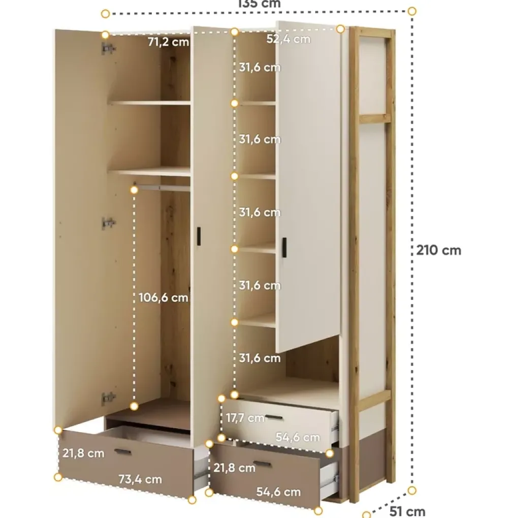 Drążek na wieszaki, umieszczony na idealnej wysokości, z łatwością pomieści zawieszone ubrania, zachowując ich idealny wygląd. Ta szafa staje się nie tylko miejscem do przechowywania, ale i mini-garderobą, pomagającą w kształtowaniu indywidualnego stylu.