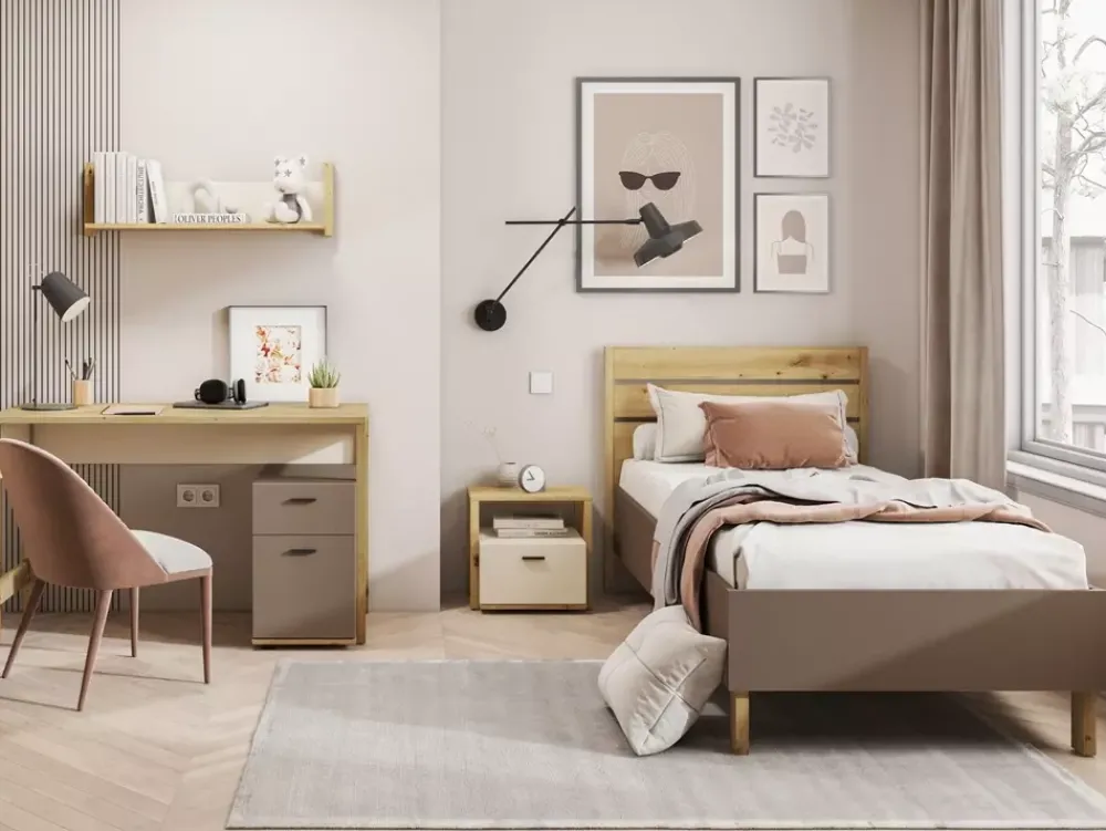 Ten zestaw mebli jest idealnym dodatkiem do każdego pokoju młodzieżowego, łącząc elegancję z praktycznością. Stwórz miejsce, które jest tak unikalne i inspirujące, jak młody człowiek, który je zamieszka.