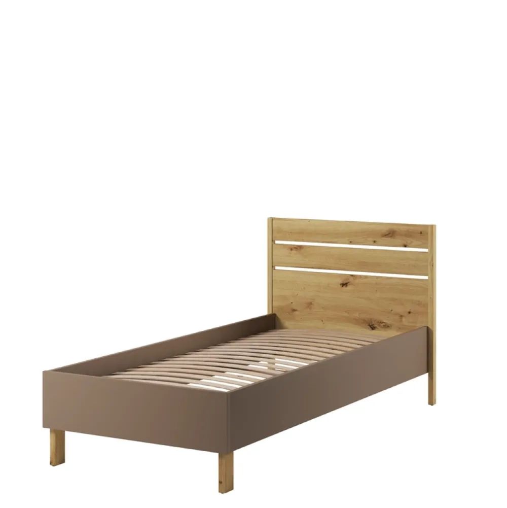 Na koniec, po ciężkim dniu pełnym przygód, nasze łóżko ze stelażem z miejscem na materac o powierzchni 90×200 cm to idealne miejsce na odpoczynek. Wykonane z wysokiej jakości, wytrzymałego drewna, to łóżko jest tak piękne, jak trwałe. Stelaż jest zaprojektowany tak, aby zapewnić optymalne wsparcie dla materaca, zapewniając tym samym doskonały sen. Prosta, ale stylowa rama dodaje elegancji, a głębokie, matowe wykończenie sprawia, że jest to mebel, który można z dumą pokazać.
