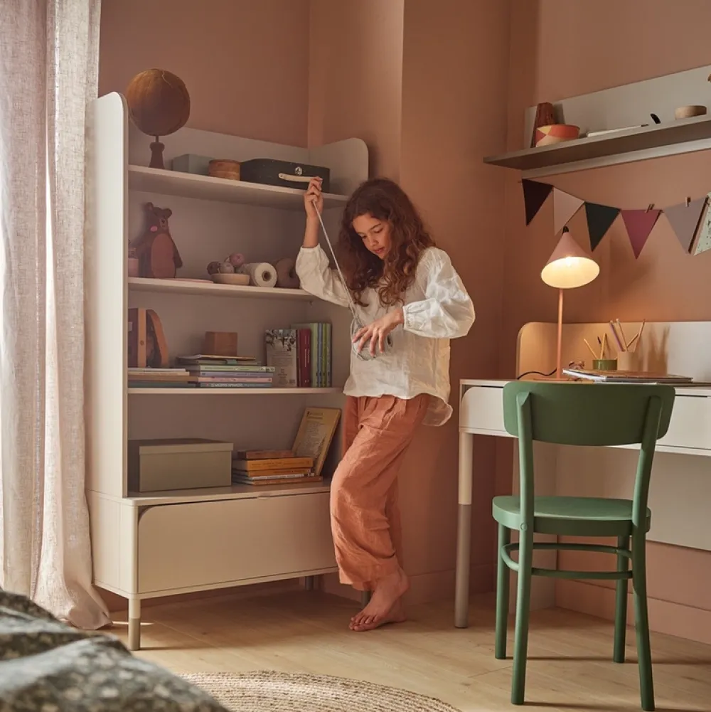 Łącząc proste linie z wyrafinowanymi detalami, ten regał na książki przenosi design pokoju młodzieżowego na wyższy poziom oferując zarówno funkcjonalność, jak i wyjątkowy styl.