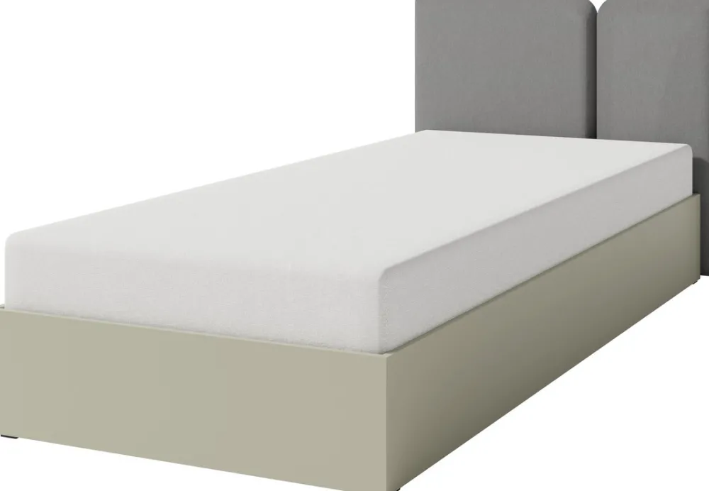 - Łóżko o powierzchni spania 90×200 cm z tapicerowanym zagłówkiem, który zapewnia wygodę podczas wieczornego relaksu i nadaje wnętrzu eleganckiego charakteru. Wbudowany pojemnik na pościel to idealne rozwiązanie, które pomoże utrzymać porządek i zaoszczędzić miejsce.