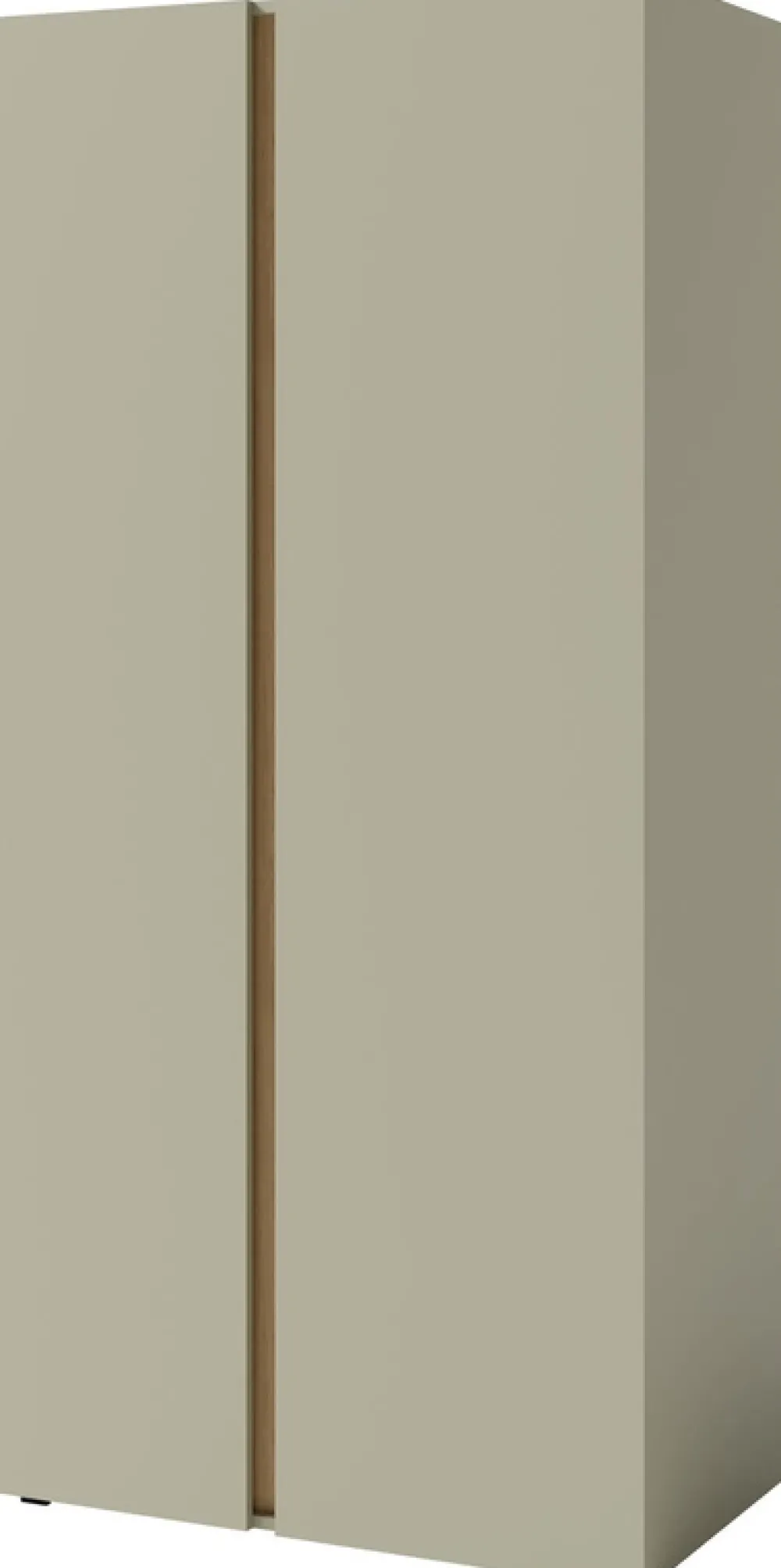 - Uchylna szafa z drążkiem na wieszaki, która zapewnia przestrzeń na ubrania i dodatki, umożliwiając ich przechowywanie w idealnym porządku. Dzięki nowoczesnej formie szafa harmonijnie komponuje się z pozostałymi elementami zestawu.