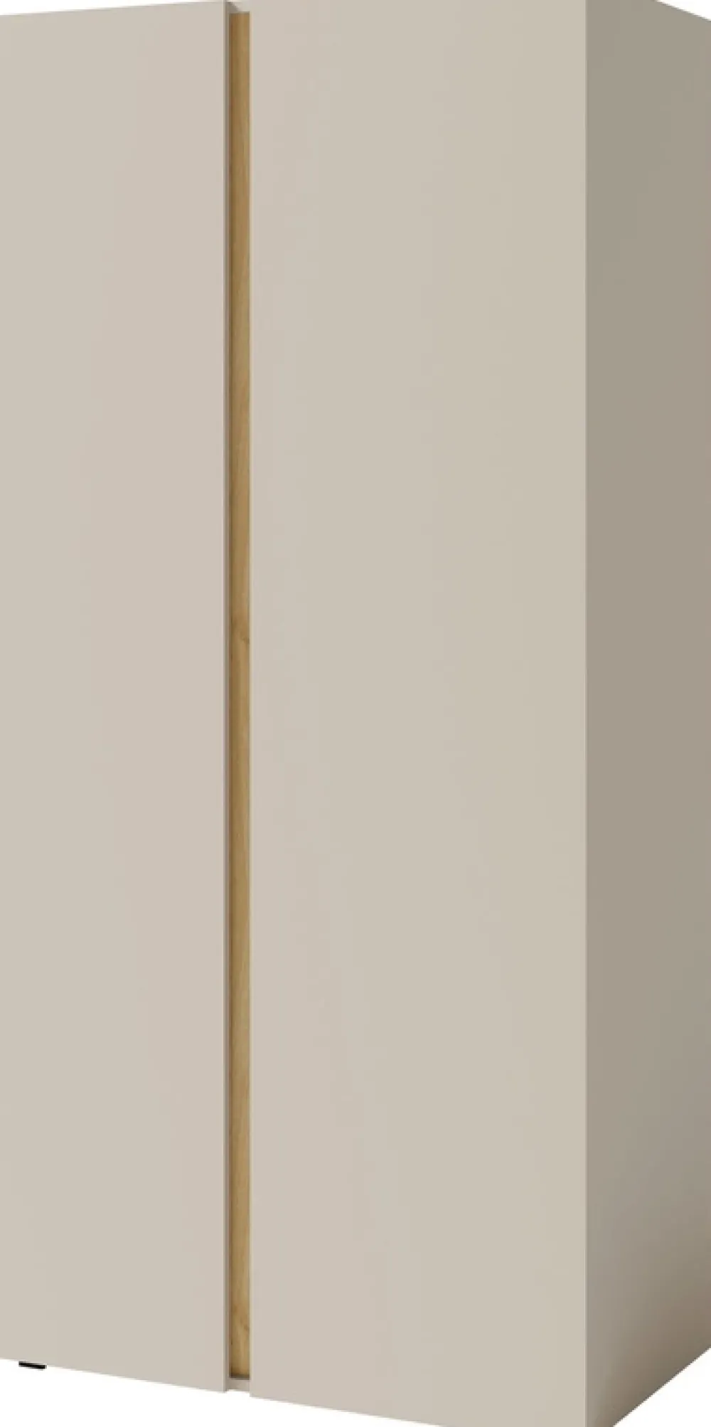 - Uchylna szafa z drążkiem na wieszaki, która zapewnia przestrzeń na ubrania i dodatki, umożliwiając ich przechowywanie w idealnym porządku. Dzięki nowoczesnej formie szafa harmonijnie komponuje się z pozostałymi elementami zestawu.