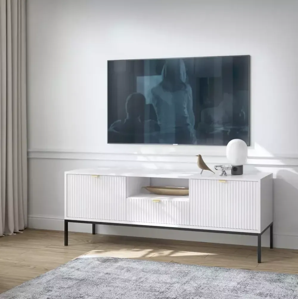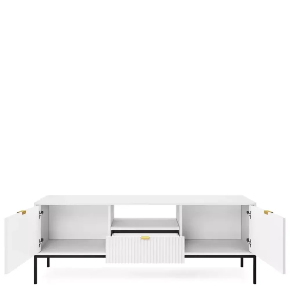 - Fronty mebli wykonane są z płyty MDF o grubości 18 mm, a dla lepszego efektu znajdują się na nich ryflowane fronty.
