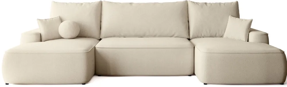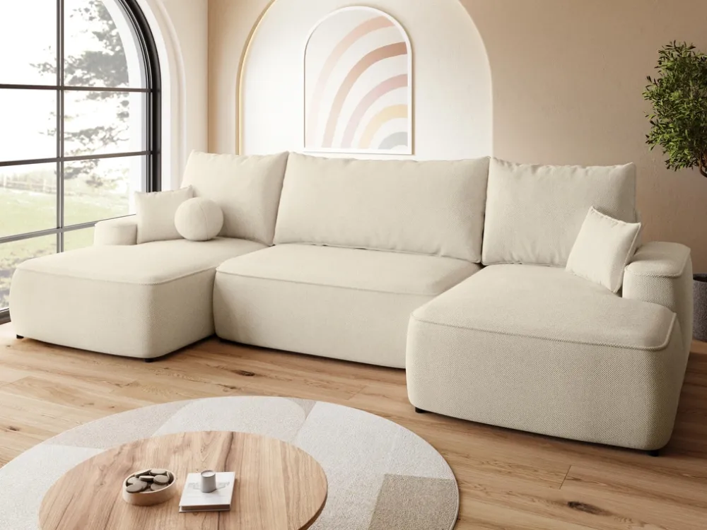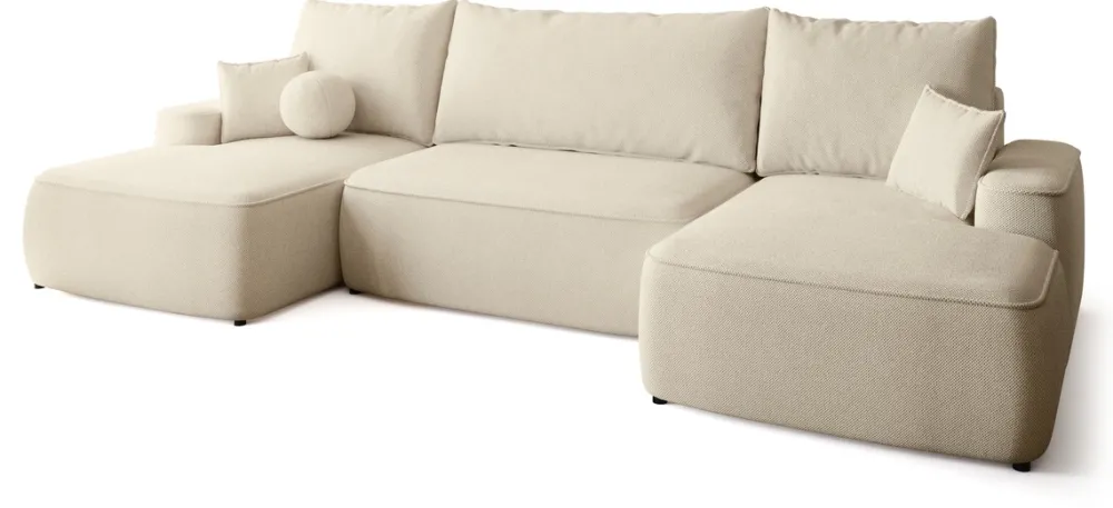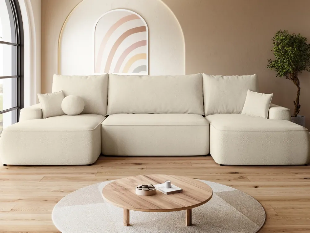 Narożniki>BROMARKT Beżowy narożnik do salonu z funkcją spania i pojemnikiem CARMELLO U