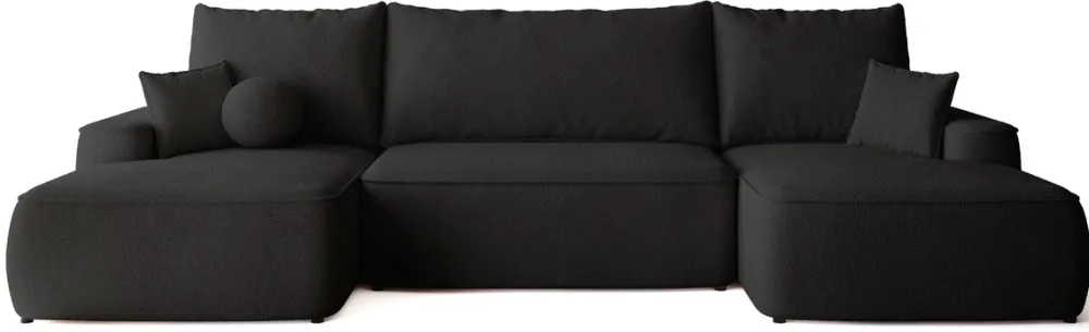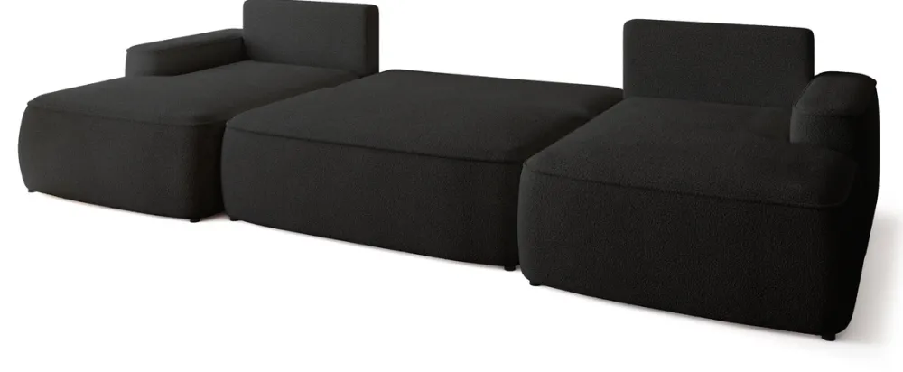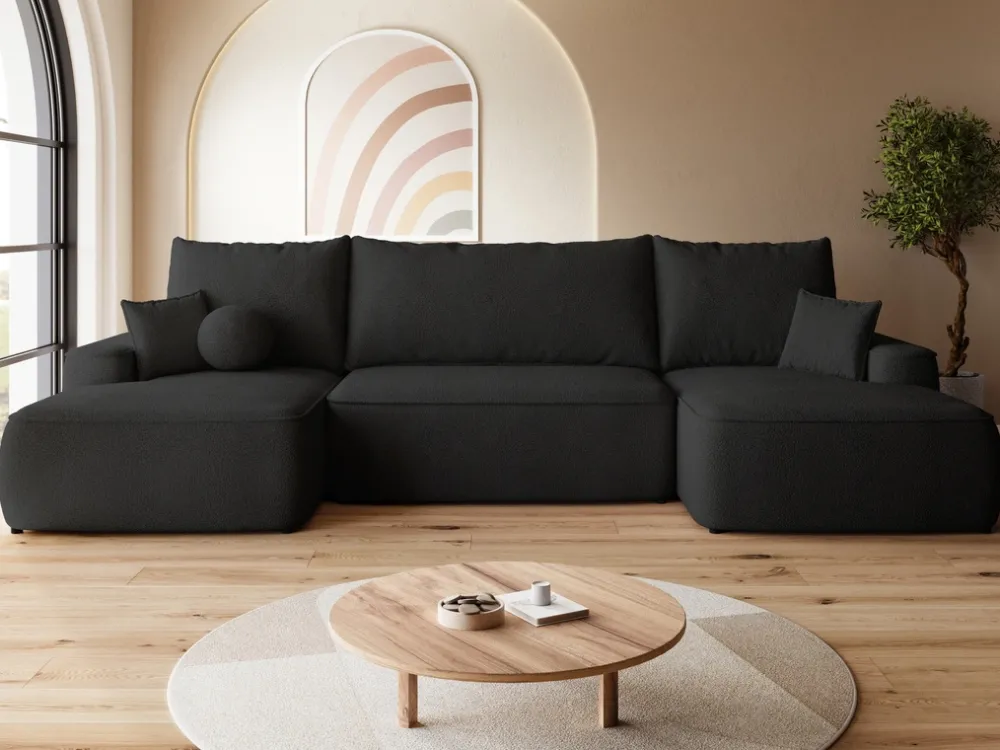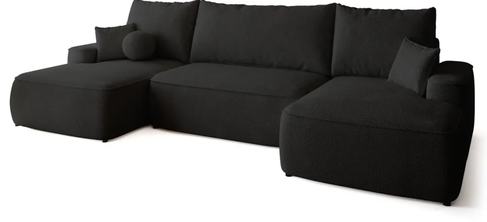 Narożniki>BROMARKT Czarny narożnik z funkcją spania do salonu boucle CARMELLO U