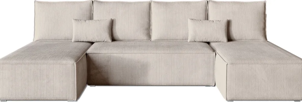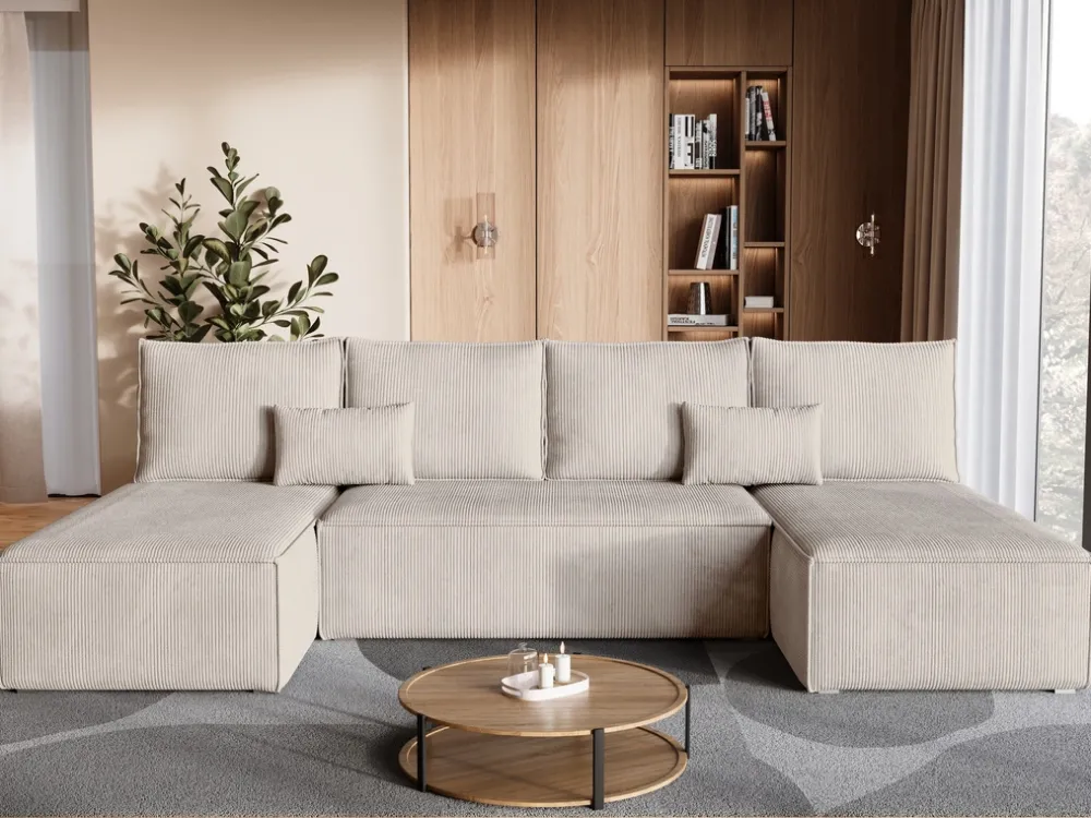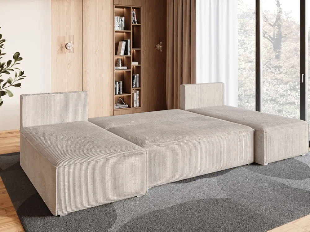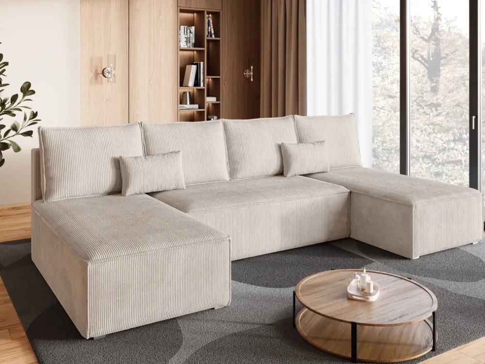 Narożniki>BROMARKT Duży beżowy narożnik sztruksowy z funkcją spania do salonu TOP U SLIM