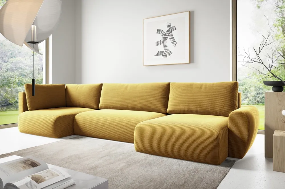 Narożniki>BROMARKT Duży narożnik U do salonu nowoczesny z funkcją spania sztruksowy PATI MAXI