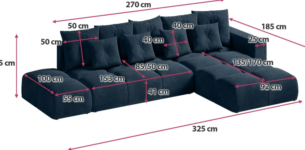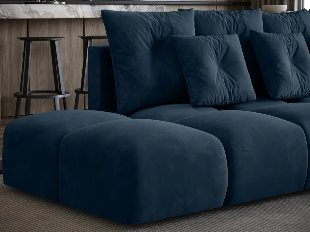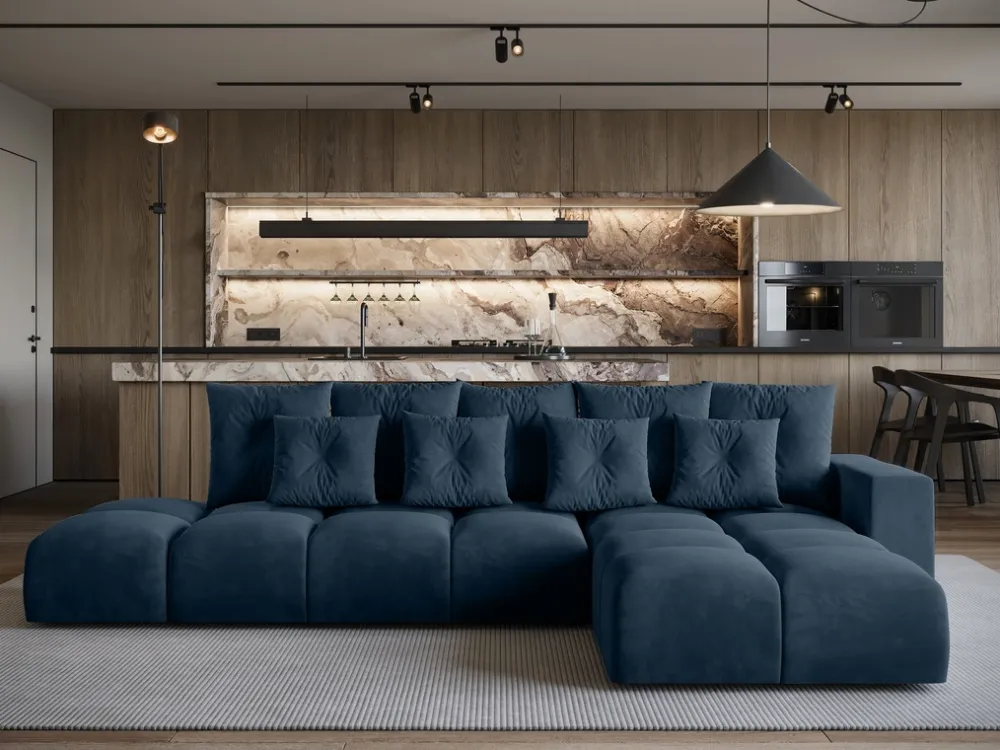 Narożniki>BROMARKT Granatowy narożnik z funkcją spania do salonu RAMIRO welurowy