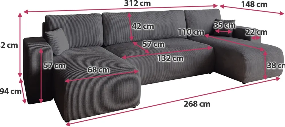 Narożniki>BROMARKT Kanapa narożna szara z funkcją spania do salonu PUMI U