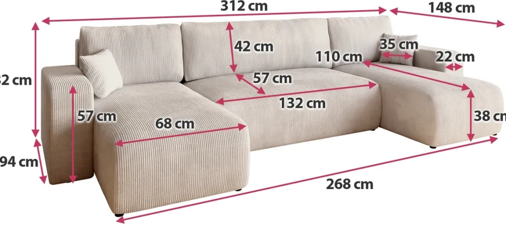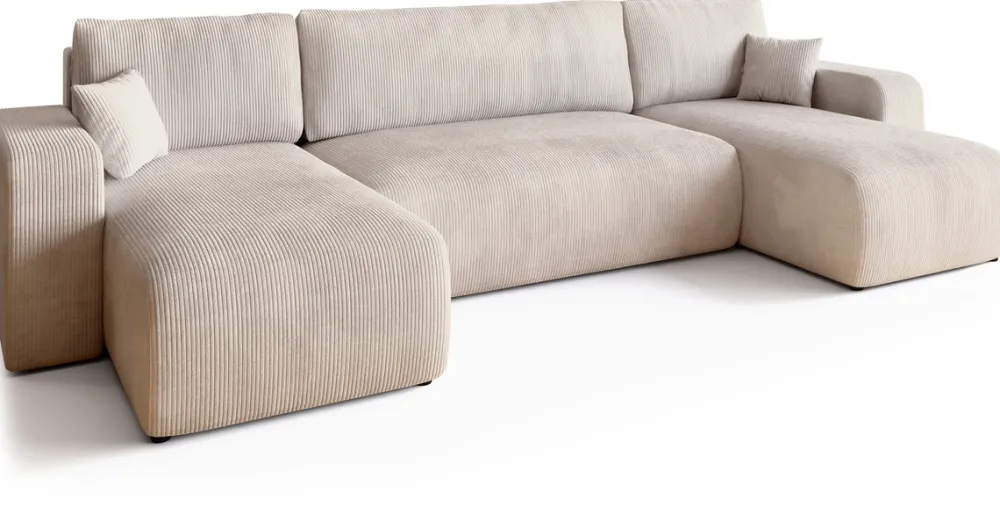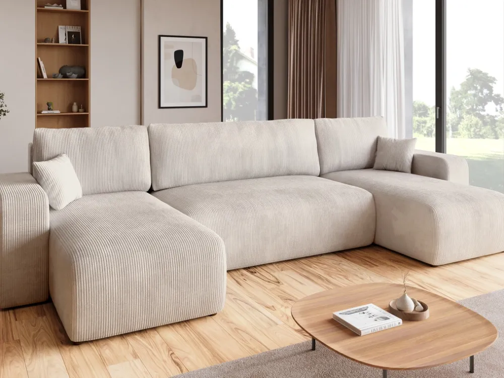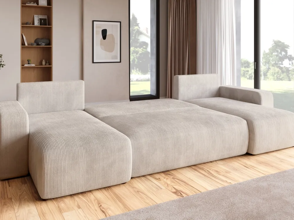 Narożniki>BROMARKT Kremowy narożnik sztruksowy z funkcją spania do salonu PUMI U