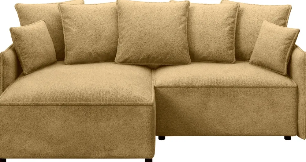 To co wyróżnia narożnik z funkcją spania to lekkie i eleganckie boczki, które w połączeniu z pięcioma dużymi poduchami oparciowymi – zapewniają nie tylko komfort, ale także wyjątkowy design. Dodatkowo dwie małe poduszki pomogą w znalezieniu idealnej dla siebie pozycji.
