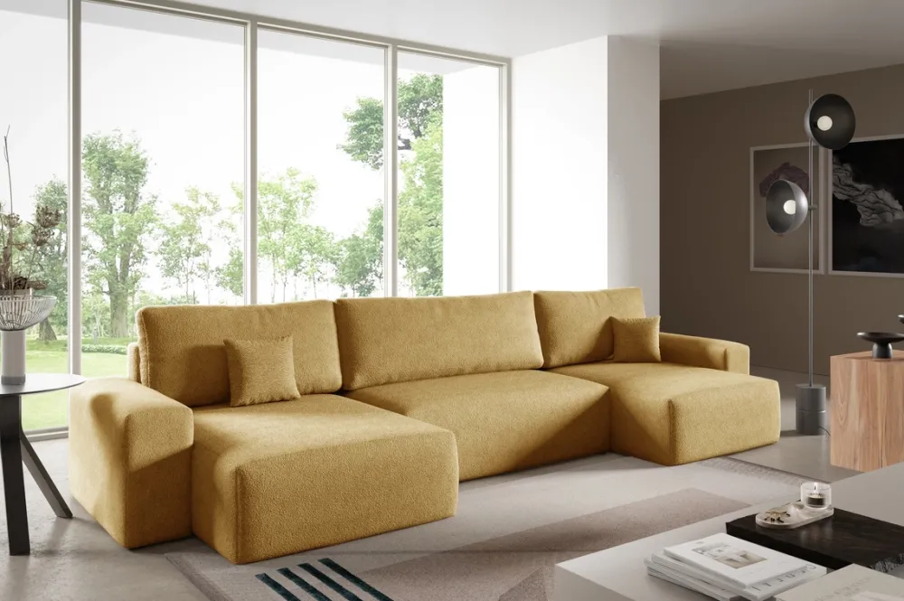 Narożniki>BROMARKT Musztardowy narożnik do salonu w kształcie U rozkładany z funkcją spania CAMILO