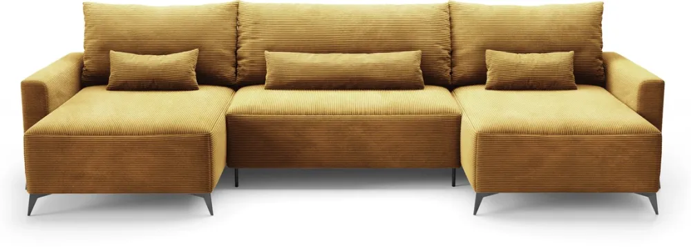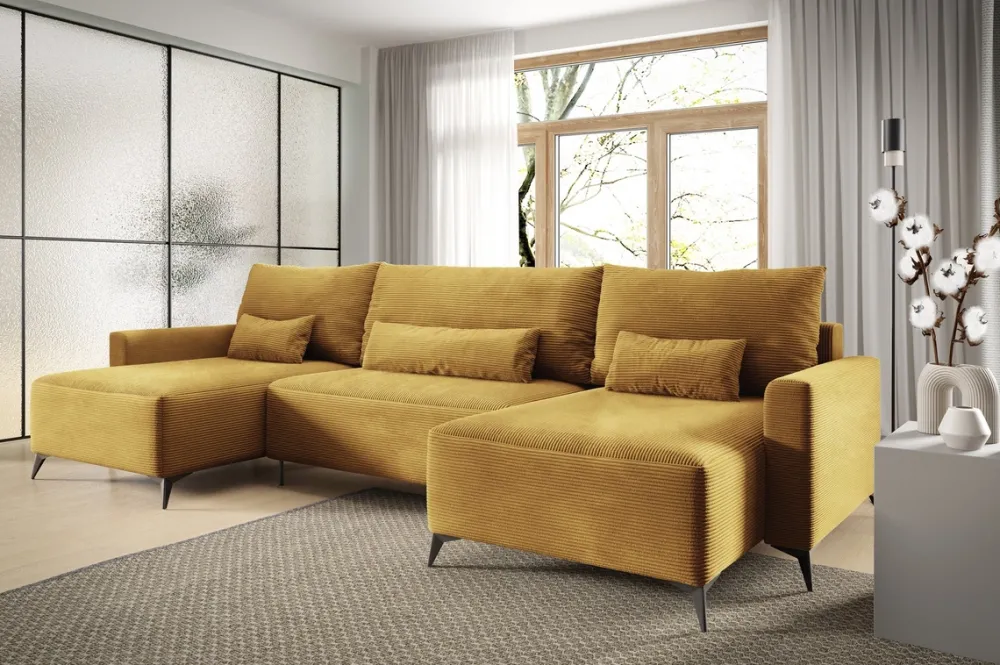 Narożniki>BROMARKT Musztardowy narożnik loft z funkcją spania sztruksowy do salonu LORENZO U