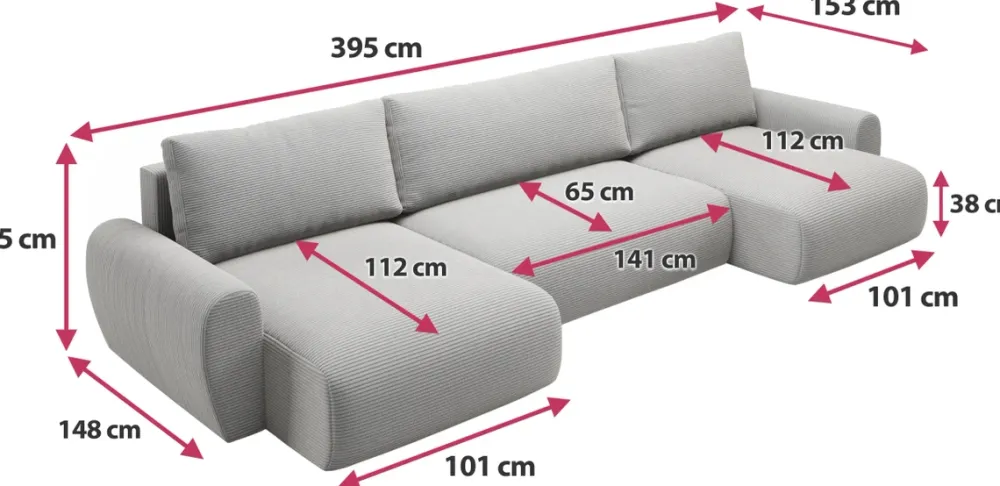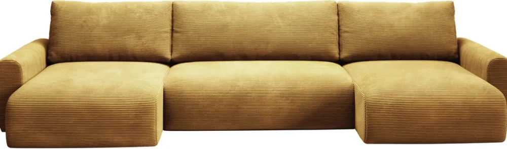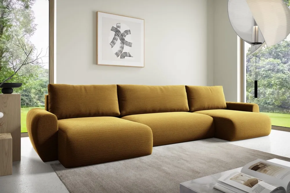 Narożniki>BROMARKT Musztardowy narożnik U nowoczesny do salonu z funkcją spania sztruksowy PATI