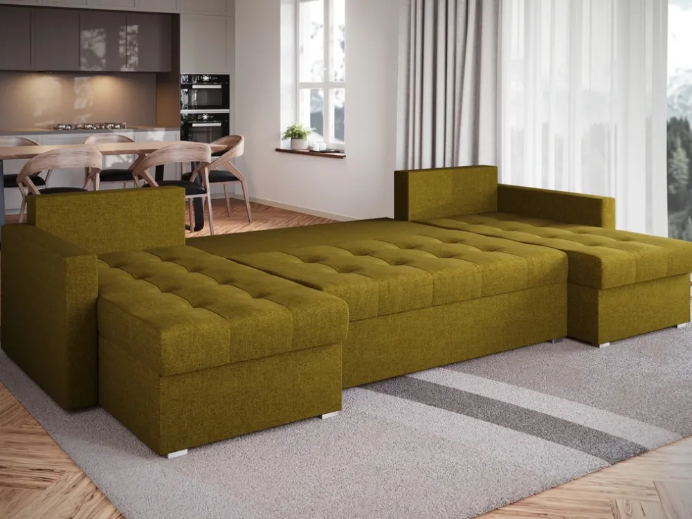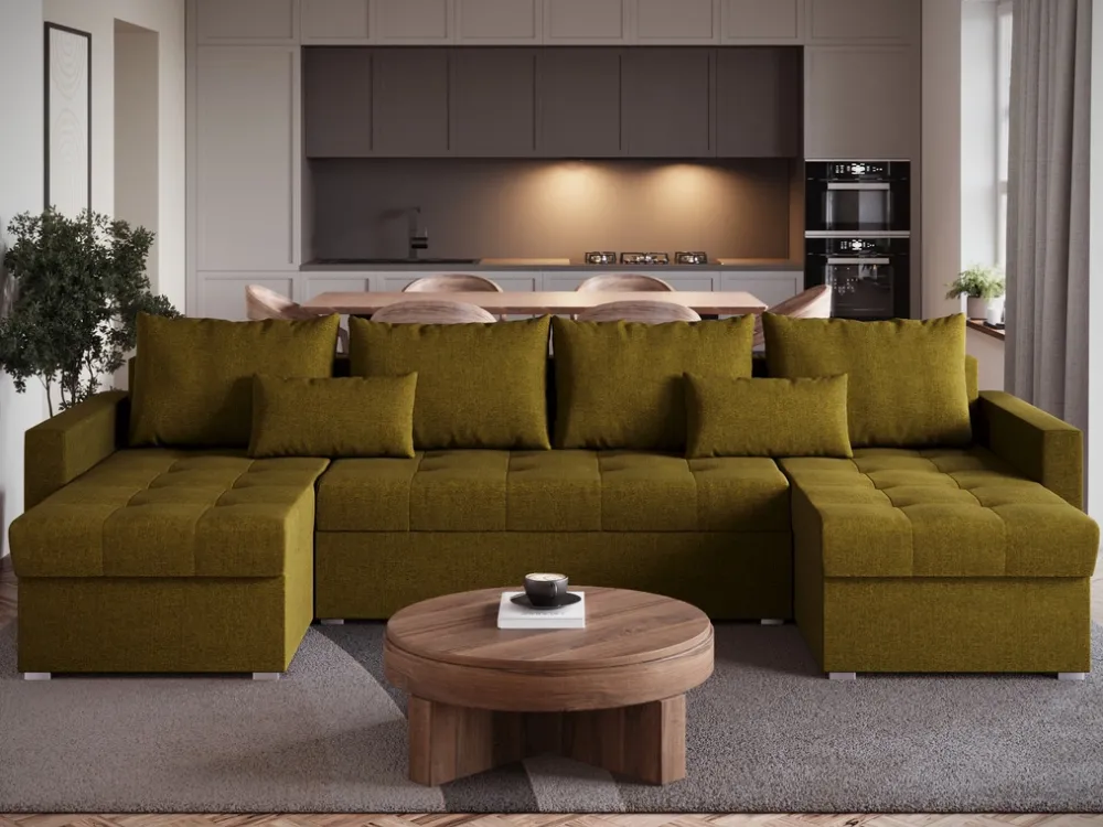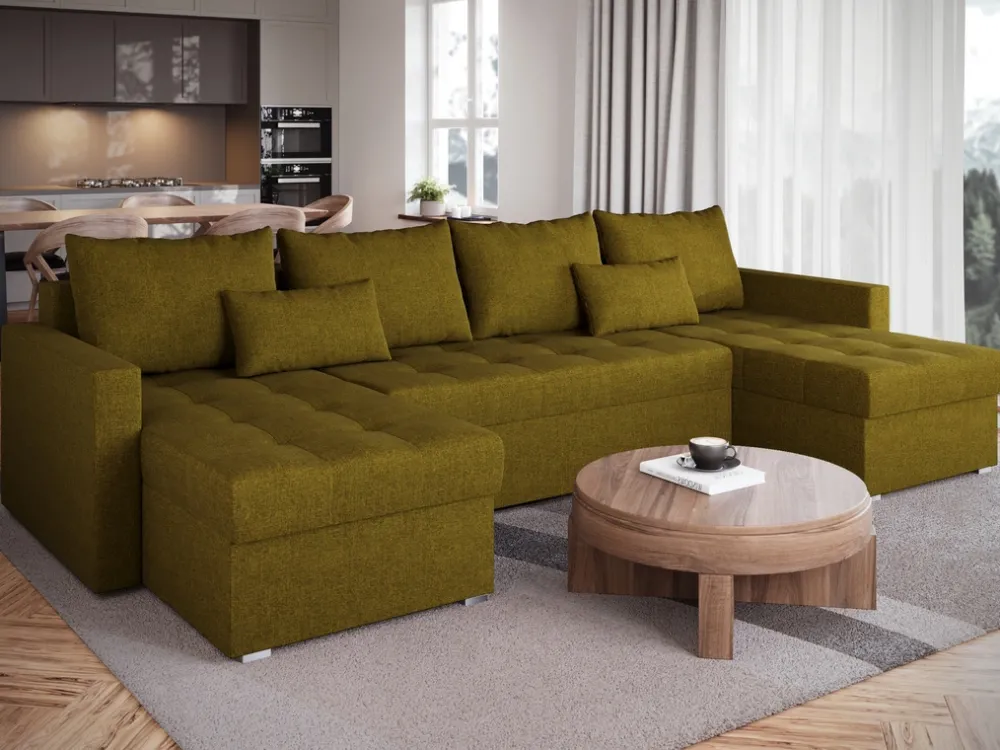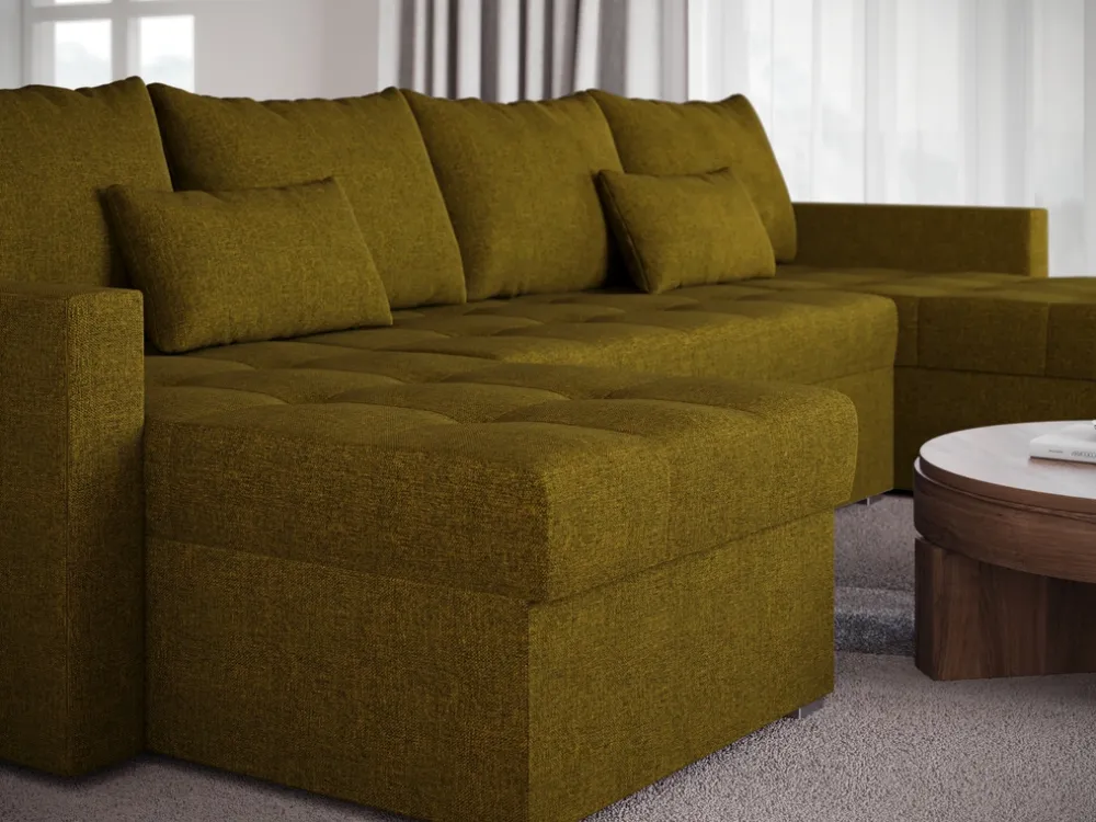 Zaprezentuj swojemu salonowi nowy wymiar funkcjonalności dzięki nowoczesnemu narożnikowi U-kształtnemu HOT. Idealnie wpasuje się w przestrzeń większych salonów, zapewniając komfortowe miejsce do odpoczynku dla całej rodziny. Dzięki funkcji spania o wymiarach 120×267 cm, narożnik ten łatwo przekształci się w wygodne łóżko, idealne do codziennego użytku lub jako dodatkowe miejsce do spania dla gości.