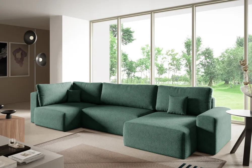 Narożniki>BROMARKT Narożnik do salonu w kształcie U rozkładany zielony CAMILO MAXI