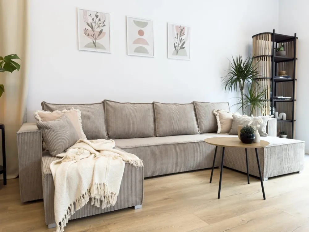 Sztruksowy narożnik to nie tylko piękno, ale także praktyczność. Wyposażony w łatwo rozkładaną funkcję spania, idealnie sprawdzi się jako dodatkowe miejsce do odpoczynku dla Twoich gości. Przemyślany design zapewnia prostotę użytkowania, umożliwiając szybką i bezproblemową transformację z eleganckiego siedziska w wygodne łóżko.