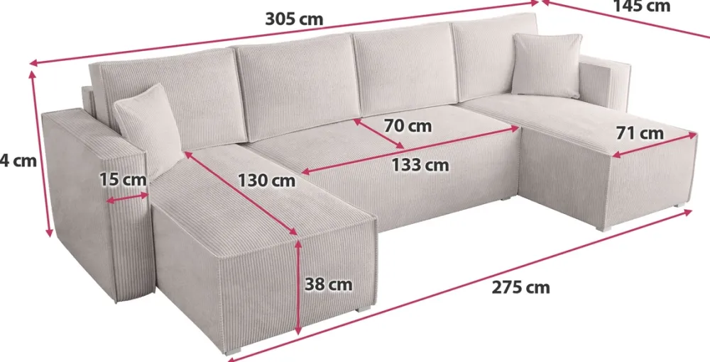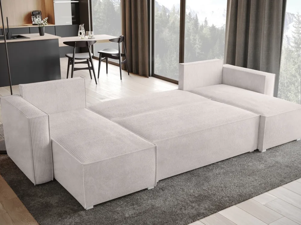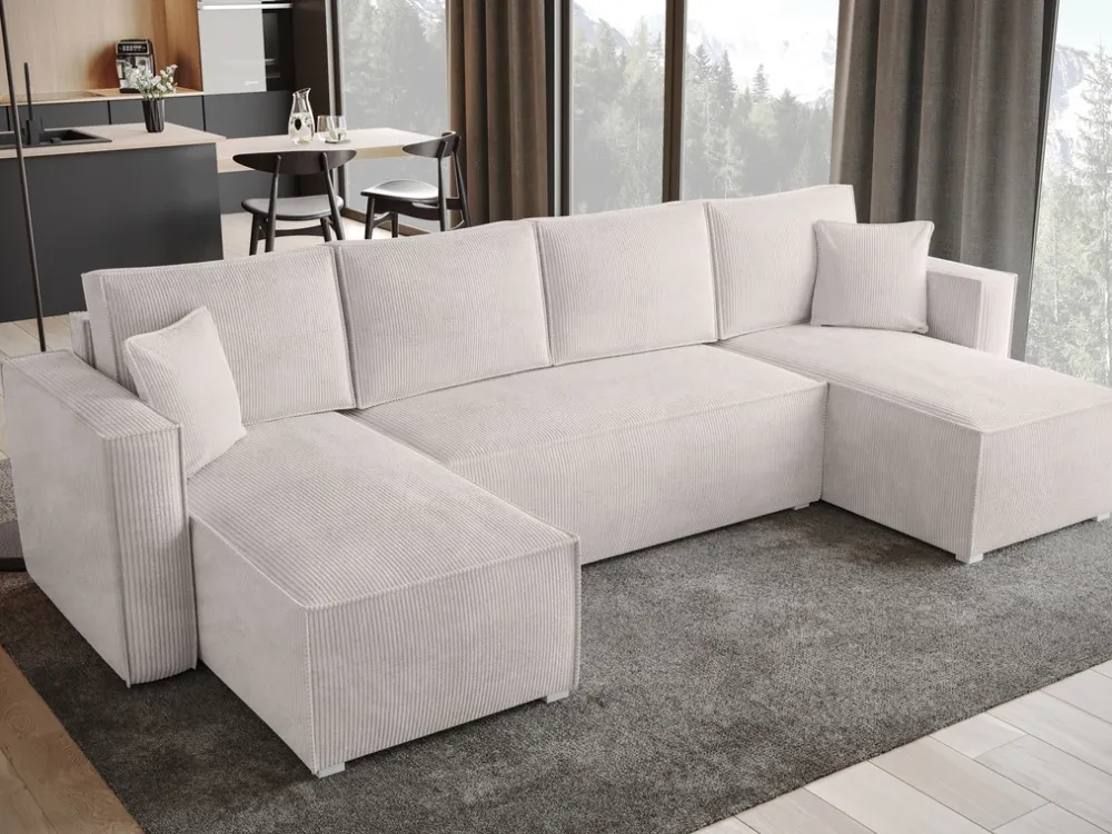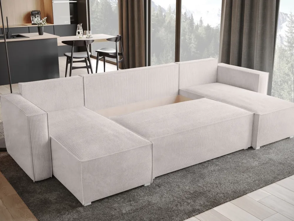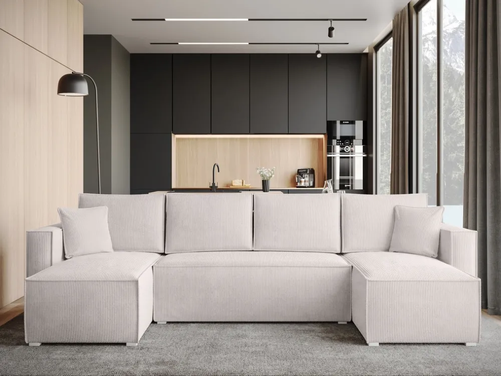 Narożnik sztruksowy TOP U to kwintesencja nowoczesnego designu, idealny dla tych, którzy cenią sobie zarówno styl, jak i funkcjonalność. Jego sztruksowa tkanina, dostępna w różnorodnych kolorach, dodaje wnętrzu ciepła i przytulności, zachowując przy tym elegancki, współczesny wygląd. Dzięki swojej prostej, ale wyrafinowanej formie, narożnik ten pasuje do różnorodnych aranżacji – od minimalistycznych po te bogate w dodatki.