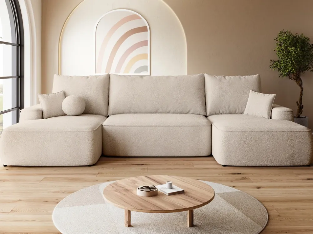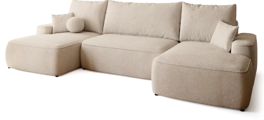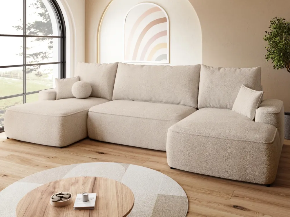 Narożniki>BROMARKT Narożnik z funkcją spania do salonu boucle CARMELLO U beż