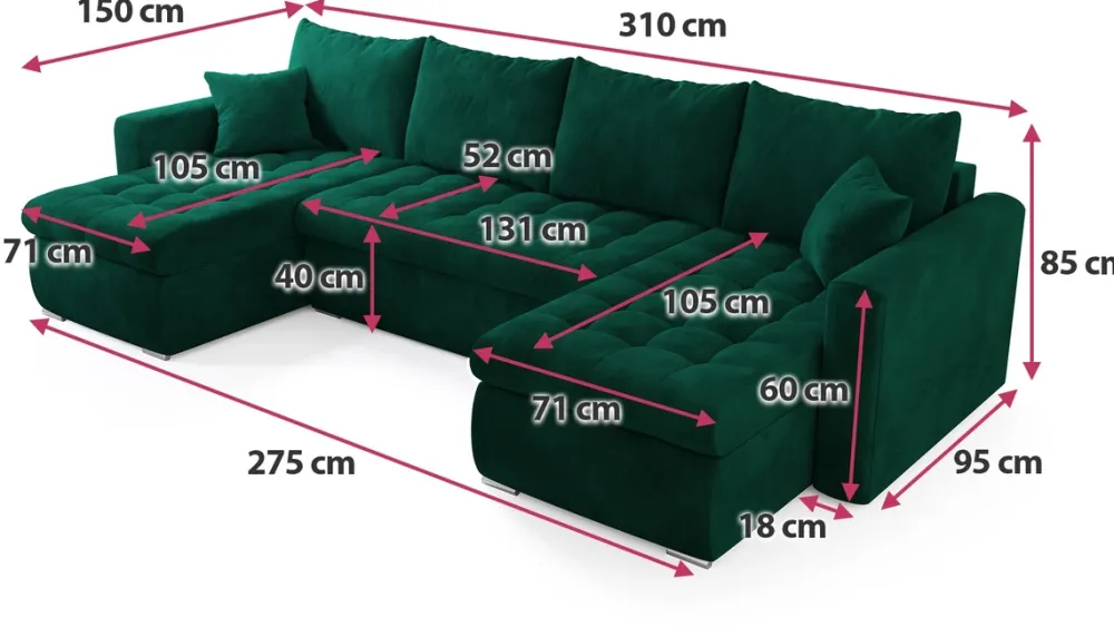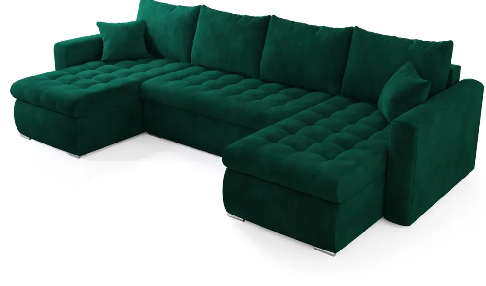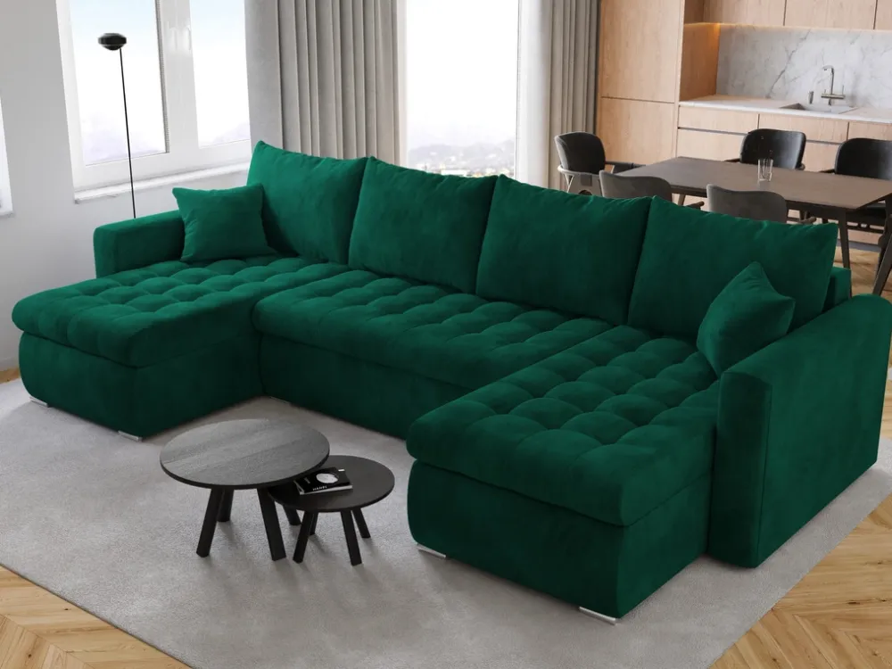 Narożniki>BROMARKT Narożnik z funkcją spania i pojemnikiem LUIS U butelkowa zieleń