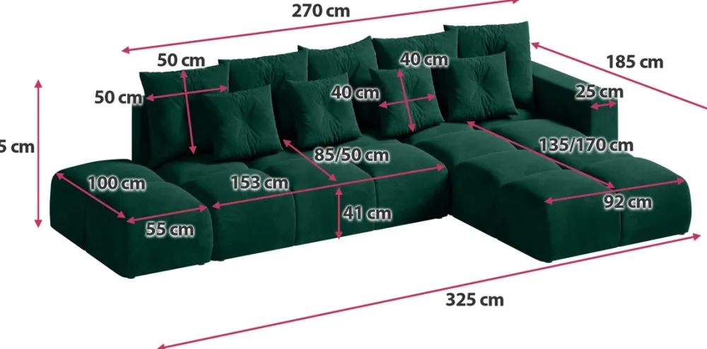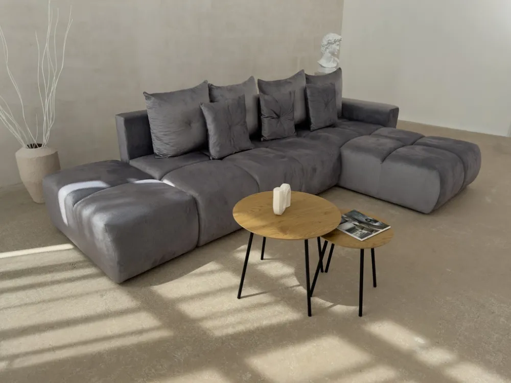 - Uniwersalna konstrukcja kanapy narożnej pozwoli zdecydować o finalnym ustawieniu podczas montażu.