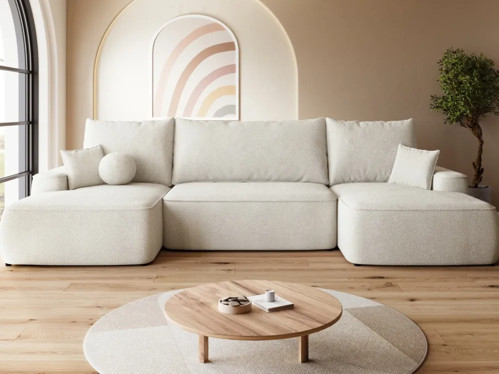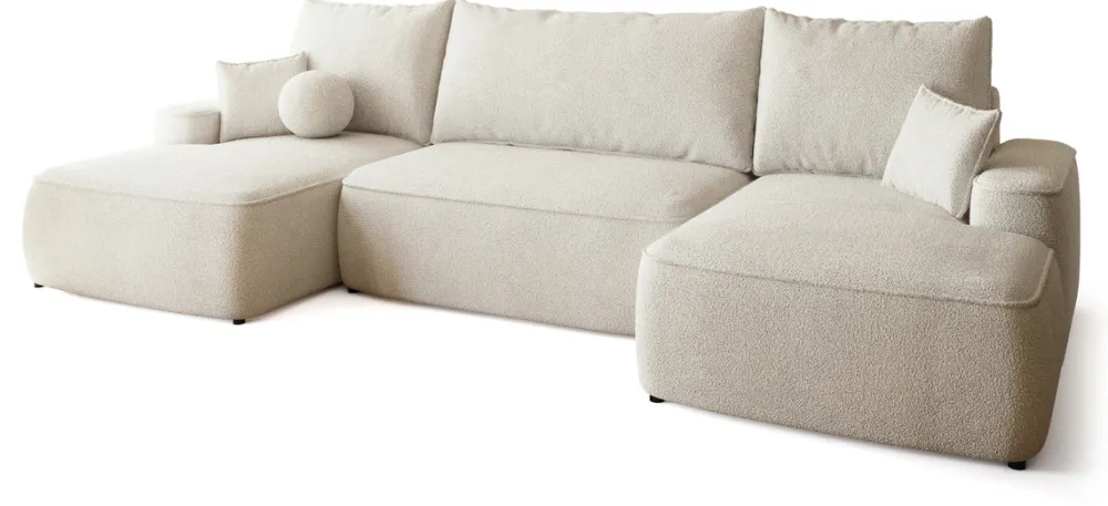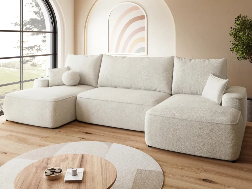 Narożniki>BROMARKT Nowoczesna kanapa narożna boucle z funkcją spania CARMELLO U beż
